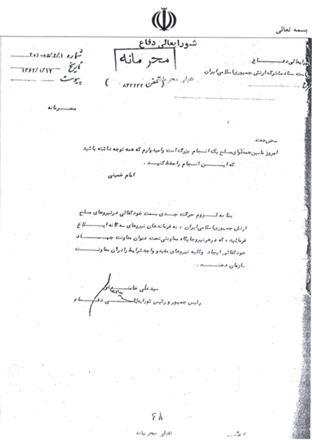 بنا به لزوم حرکت جدی بسمت خودکفائی در نیروهای مسلح ارتش جمهوری اسلامی ایران، به فرماندهان نیروهای سه گانه ابلاغ فرمائید، که در هر نیرو جایگاه معاونتی تحت عنوان معاونت جهاد خودکفائی ایجاد و کلیه نیروهای مفید و واجد شرایط را در آن معاونت سازمان دهند.