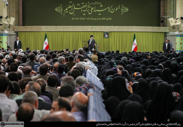 وقتی آقا از پیگیری صحبت میکنند و حرفهای خوبی که بدون پیگیری، خروجی آنها دیده نمیشود، جمعیت با صدای بلند صلوات میفرستد. آقا اضافه میکنند که البته ما دنبال نتایج کوتاهمدت نیستیم.