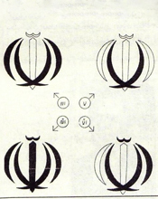 یکی از ویژگیهای مهم این آرم، بازتاب تصویری جمله توحیدی «لا اله الا الله» در ترکیب کلی آن است. جایگیری اجزا، منحنیها و فرم شمشیر، بهگونهایست که عبارت «لا» در ساختار فرم نهفته شده و امتداد آن به «الله» ختم میشود. این ترکیب، پیامی روشن دارد: نفی طاغوت و اثبات خدای یکتا. در این آرم، فرم و محتوا درهم تنیدهاند. این نماد، تنها بازگوکننده کلمهای مقدس نیست؛ بلکه تجسمی از یک تفکر، یک سیاست، و یک فلسفه زندگی است.(۷)