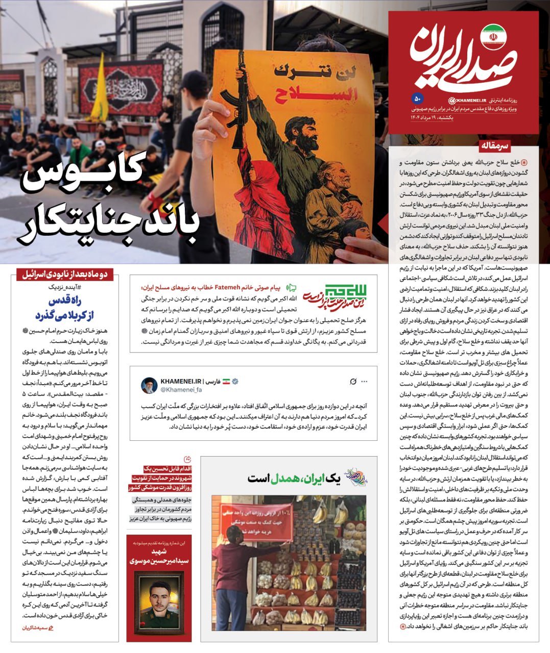 «صدای ایران»، روزنامه اینترنتی رسانهی KHAMENEI.IR، سعی دارد در چنین فضایی بهصورت روزانه همراه ملّت ایران باشد. محورها و وضعیت راهبردی جبهه نبرد را از لابهلای سیل اخبار و اطلاعات درست و نادرست بیرون کشیده، سره را از ناسره جدا کرده و آن را آنگونه که هست روایت کند. «صدای ایران» صدای ملّت ایران خواهد بود و راوی ایستادگی و مقاومت آنها در این جنگ تحمیلی.