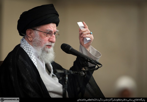 بخش دوم صحبتهای آقا در مورد قدرت ایستادگی ملت ایران است. ایشان در مورد دشمنی آمریکا میگویند. هدف آمریکا این است تا ایران و ایرانی گوش به فرمانش باشند. حضرت آقا تأکید میکنند: «این مسئله حلنشدنی است. او میخواهد که ایران گوشبهفرمان آمریکا باشد. ملّت ایران از چنین اهانت بزرگی بشدّت رنجیده میشود و در مقابل آن کسانی و آن کسی که چنین توقّع غلطی از ملّت ایران دارد، با همهی قدرت میایستد.» بعد با اشاره به جنگ اخیر میگویند: دشمن گمان میکرد در همان روزهای اول اساس حکومت ایران را نابود میکند و میتواند جانشینی برای حکومت جمهوری اسلامی ایران بر سر کار بیاورد. در جمع ابلهی که نشستند تا جایگزین پیدا کنند یک ایرانی هم بود. «خاک بر سر آن ایرانیای که به [ضرر] کشور خودش، به نفع یهود، به نفع صهیونیسم، به نفع آمریکا مینشیند فعّالیّت میکند!»