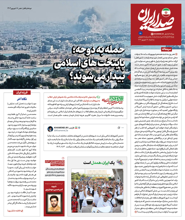 بیعملی کشورهای اسلامی در برابر جنایات رژیم در غزّه، زمینه را برای گسترش تجاوزات آن فراهم کرده است. امروز کشورهای منطقه علی رغم تمام اختلافات، با یک دشمن مشترک مواجه هستند. دشمنی که به پشتوانه حمایت آمریکا، هیچ حد و مرزی برای خود قائل نیست. پساز حمله به دوحه، کشورهای اسلامی منطقه باید به طور جدی از خود بپرسند آیا وقت بیدار شدن و اقدام نرسیده است؟