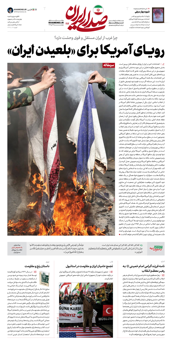 «صدای ایران»، روزنامه اینترنتی رسانهی KHAMENEI.IR که از روزهای آغازین جنگ ۱۲ روزه رژیم صهیونی علیه ایران با مأموریتی که ذکر شد آغاز به کار کرد، حال و در زمان توقف آتش سعی دارد تا بهصورت روزانه همراه ملّت ایران باشد. محورهای مهم و مرتبط را از لابهلای سیل اخبار و اطلاعات درست و نادرست بیرون کشیده، سره را از ناسره جدا کرده و وضعیت راهبردی جمهوری اسلامی ایران را آنگونه که هست روایت کند. «صدای ایران» صدای ملّت ایران خواهد بود و راوی ایستادگی و مقاومت آنها.