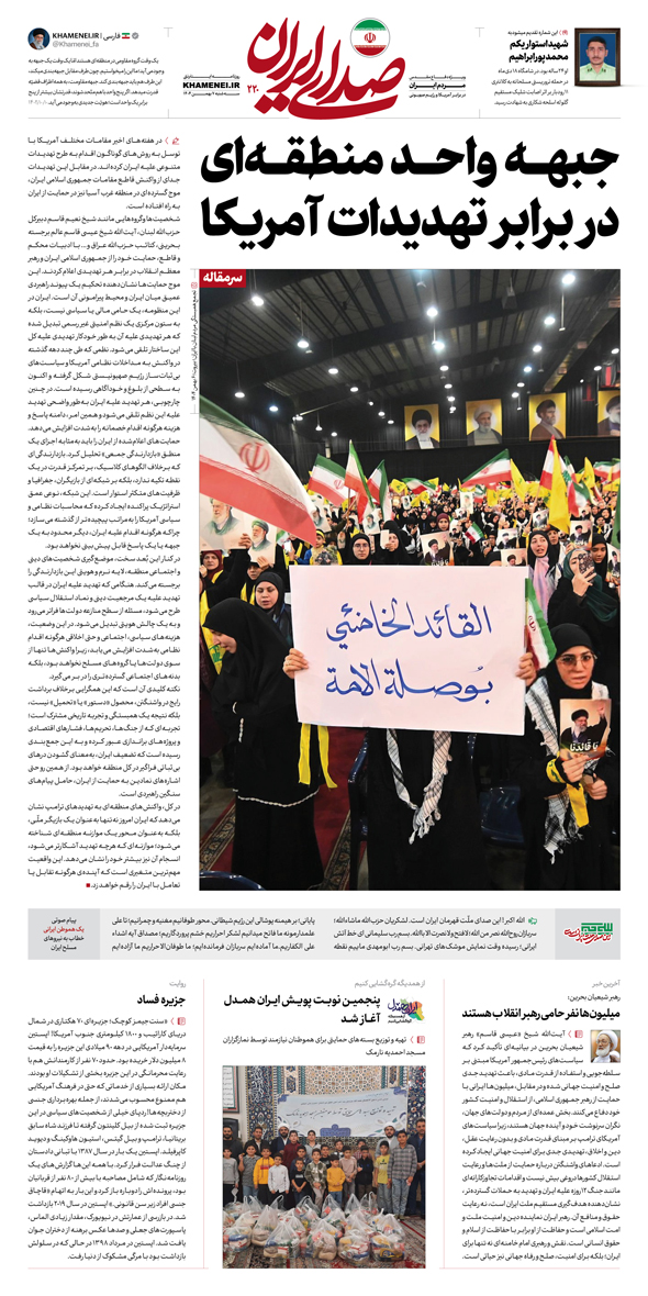 دویست و بیستمین شماره «صدای ایران» به روح مطهر، شهید استواریکم محمد پورابراهیم، که شامگاه ۱۸ دی در حمله آشوبگران مسلح به کلانتری ۱۱ رودبار به شهادت رسید، تقدیم شده است.