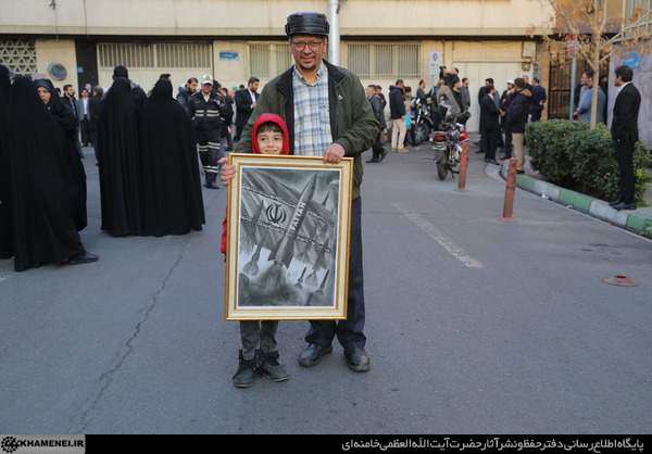 «آقا» ختم میکنند کلامشان را با تکریم مقام خانواده شهدا؛ «من به خانوادههای عزیز شهدا که این راه طولانی را طی کردند، تشریف آوردند، خوشامد عرض میکنم؛ امیدوارم که انشاءالله همهی آنها موفّق باشند و خدای متعال این شهدای عزیز را با پیغمبر محشور کند.» و برمیخیزند و با جمعیت خداحافظی میکنند.