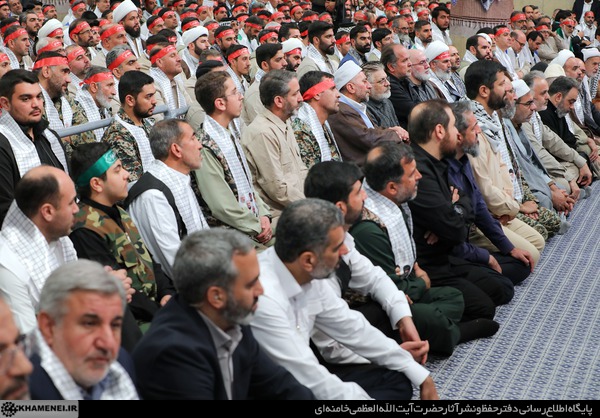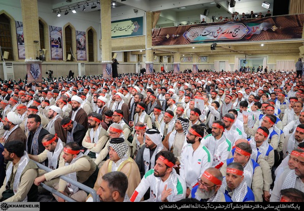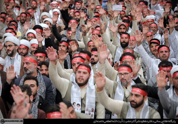 به مناسبت هفته بسیج، صبح امروز (دوشنبه) جمع کثیری از بسیجیان سراسر کشور با حضور در حسینیه امام خمینی(ره) با حضرت آیتالله خامنهای رهبر انقلاب اسلامی دیدار کردند.