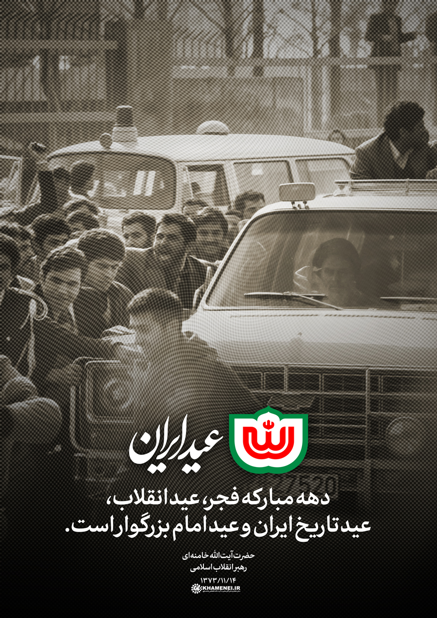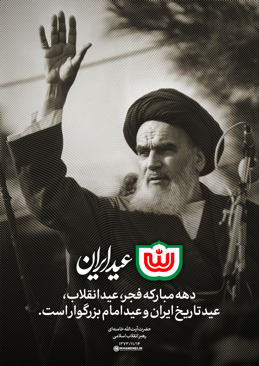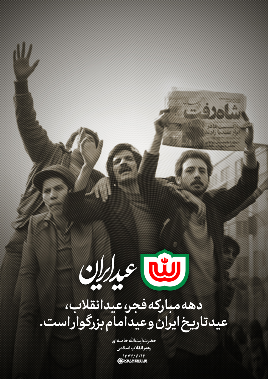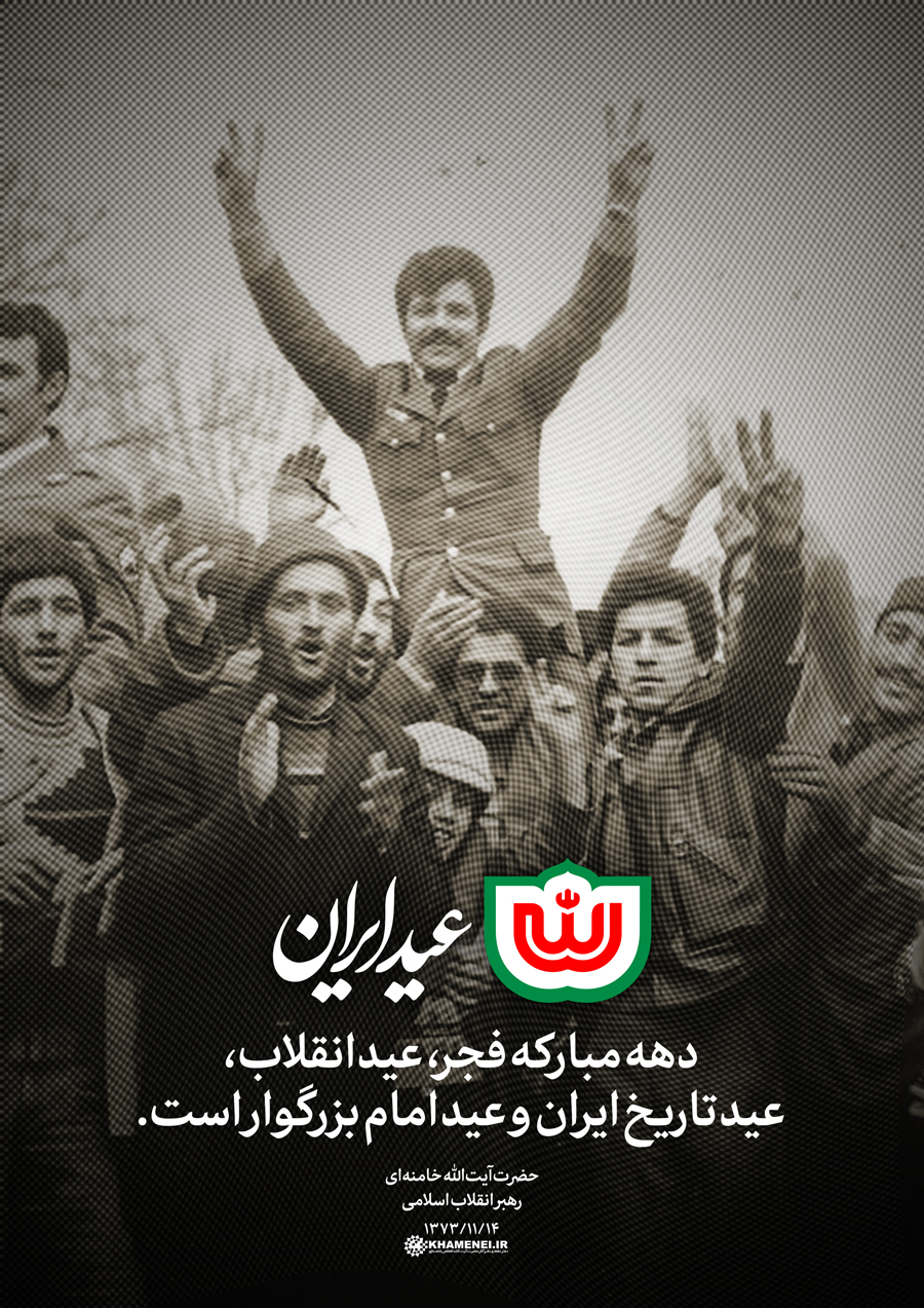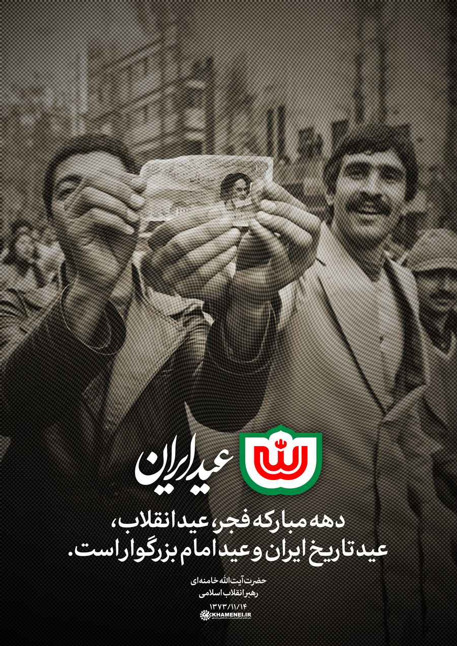 سخننگاشت | عید ایران حضرت آیتالله خامنهای: «دهه مبارکه فجر، عید انقلاب، عید تاریخ ایران و عید امام بزرگوار است.» ۱۳۷۳/۱۱/۱۴رسانه KHAMENEI.IR به مناسبت ایامالله دهه فجر و چهلوششمین سالگرد پیروزی انقلاب اسلامی مردم ایران، مجموعه «عید ایران» را منتشر میکند.