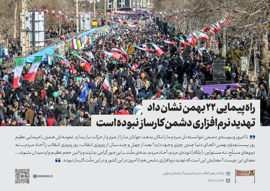 در سالروز قیام تاریخی مردم تبریز در ۲۹ بهمن سال ۱۳۵۶، صبح امروز (دوشنبه) جمعی از مردم آذربایجان شرقی با رهبر انقلاب اسلامی دیدار کردند.