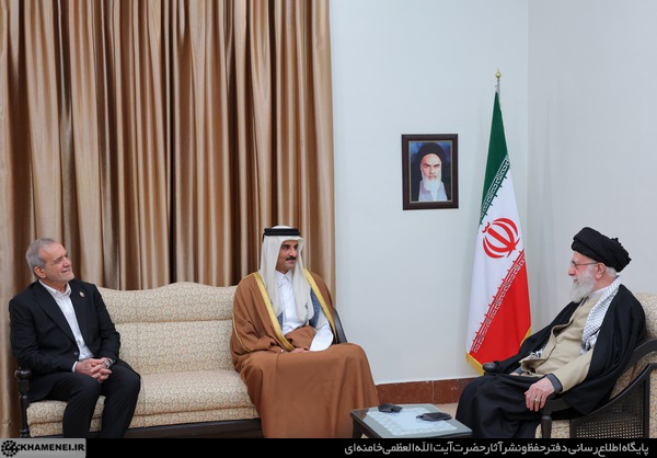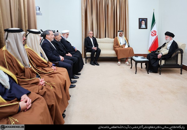 شیخ تمیم بن حمد آل ثانی امیر قطر و هیئت همراه عصر امروز (چهارشنبه) با حضرت آیتالله خامنهای رهبر معظم انقلاب اسلامی دیدار کردند.