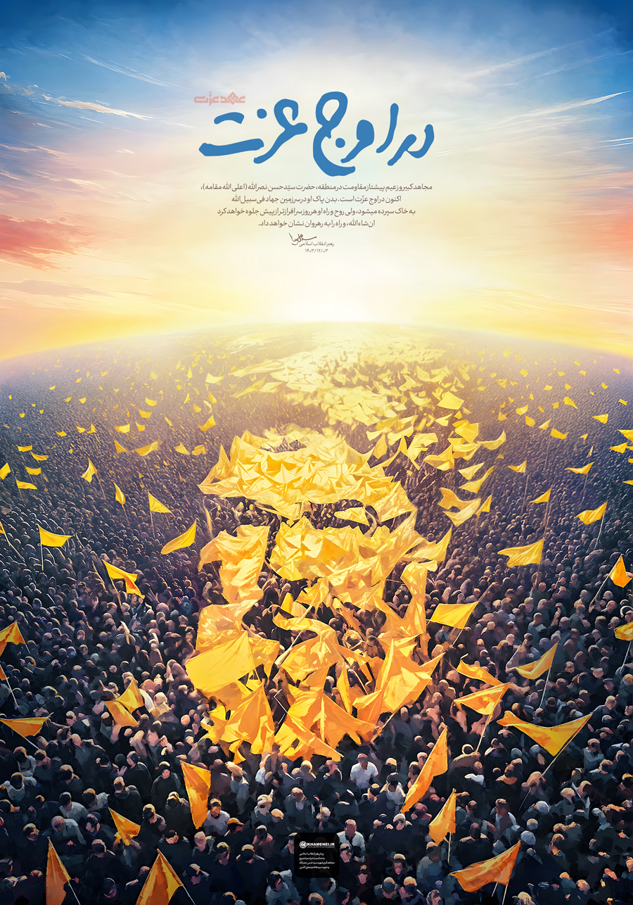 در اوج عزت![]() حضرت آیتالله خامنهای: «مجاهد کبیر و زعیم پیشتاز مقاومت در منطقه، حضرت سیّدحسن نصراللّه (اعلی اللّه مقامه)، اکنون در اوج عزّت است. بدن پاک او در سرزمین جهاد فیسبیلاللّه به خاک سپرده میشود، ولی روح و راه او هر روز سرافرازتر از پیش جلوه خواهد کرد انشاءاللّه، و راه را به رهروان نشان خواهد داد.» ۱۴۰۳/۱۲/۰۳ رسانه KHAMENEI.IR براساس پیام رهبر انقلاب اسلامی به مناسبت مراسم تشییع مجاهد کبیر شهید سیّدحسن نصرالله و شهید سیّدهاشم صفیّ الدّین، لوح «در اوج عزّت» را منتشر میکند.