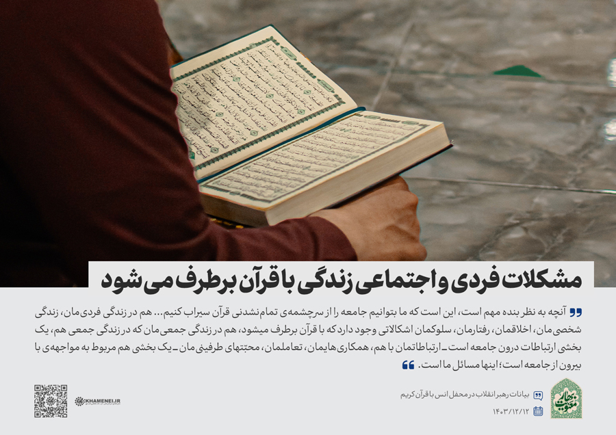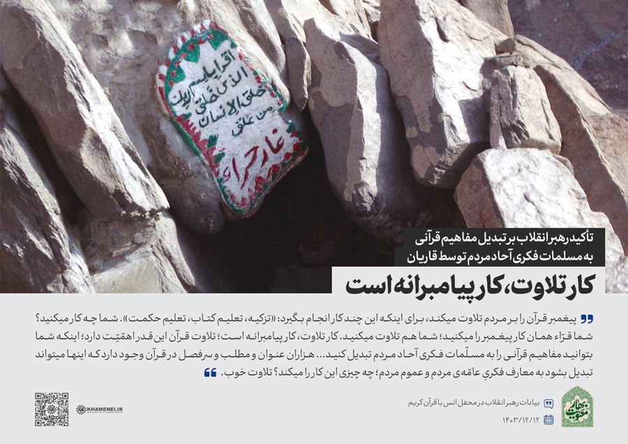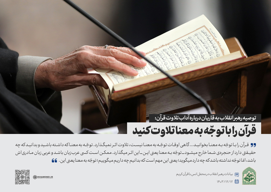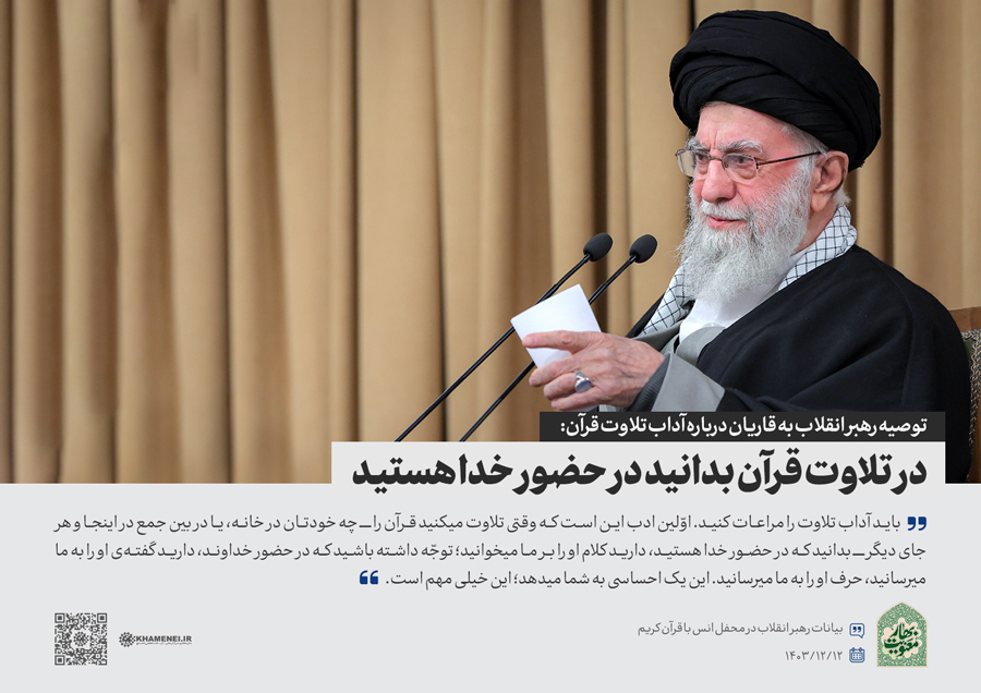 سخننگاشت | محفل انس با قرآن کریم![]() مراسم انس با قرآن کریم در اولین روز از ماه مبارک رمضان با حضور رهبر انقلاب اسلامی در حسینیه امام خمینی (ره) برگزار شد. در این مراسم جمعی از قاریان و حافظان ممتاز و برتر کشور و اساتید قرآنی حضور داشتند.رسانه KHAMENEI.IR در این مجموعه سخننگاشت مروری بر بیانات رهبر انقلاب داشته است.