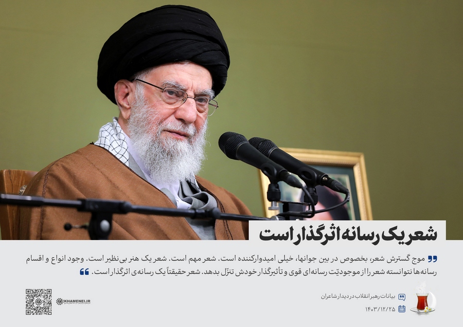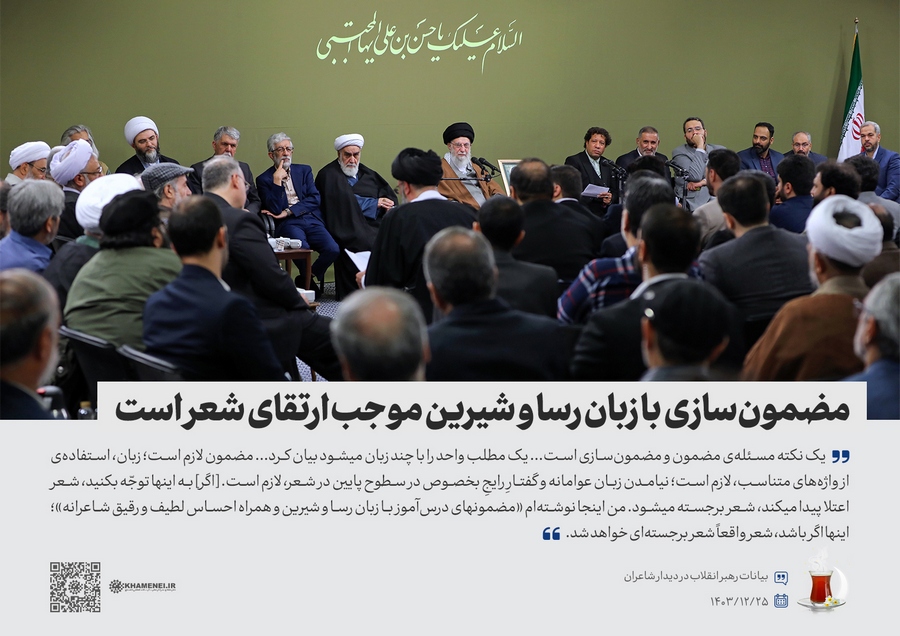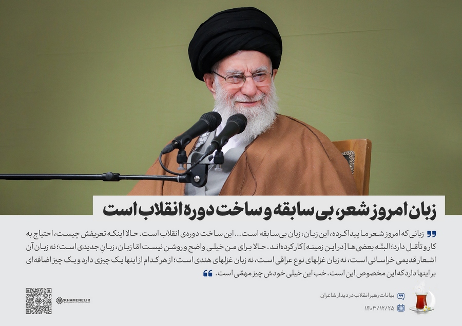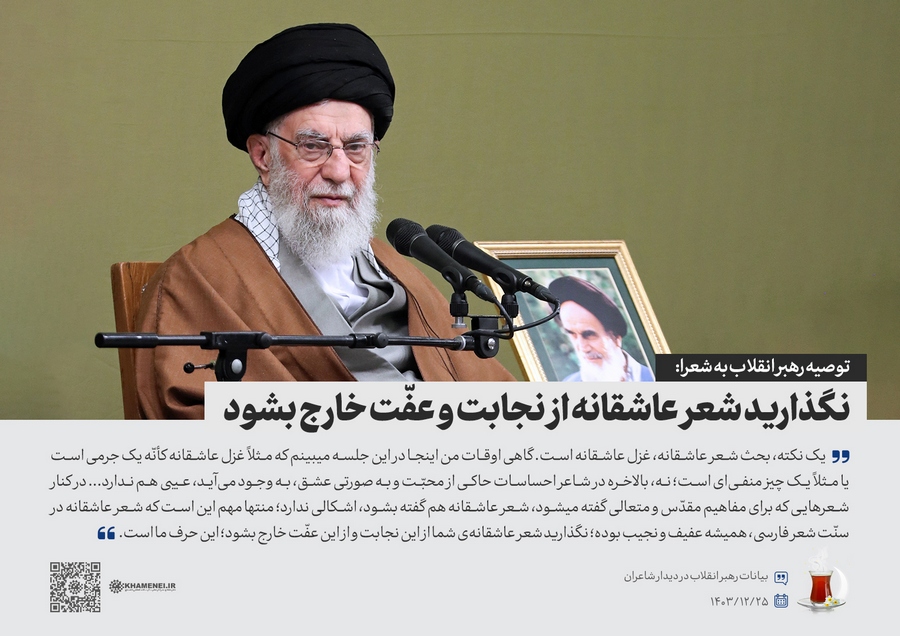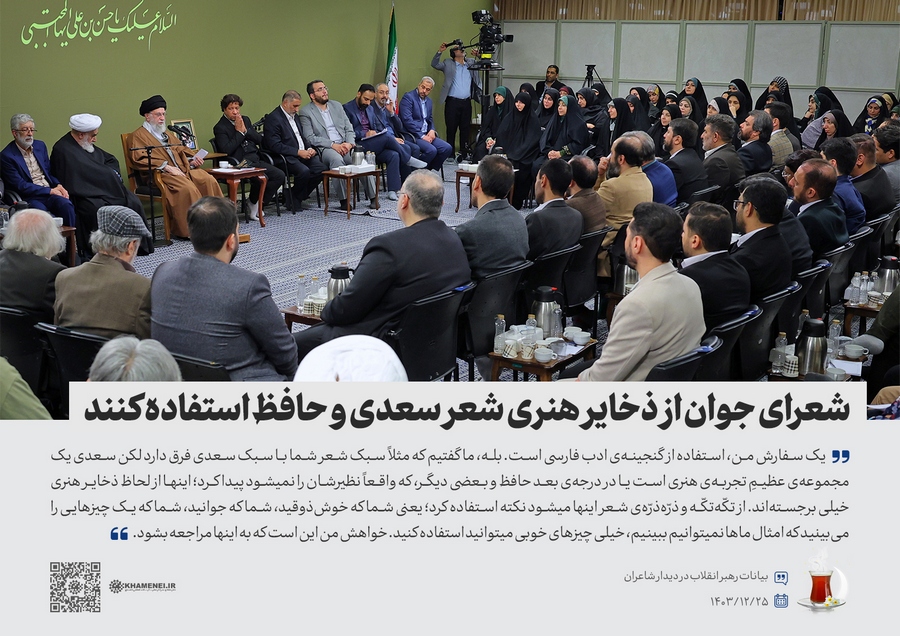 سخننگاشت | دیدار شاعران و اهالی فرهنگ و ادب فارسی در شب ولادت کریم اهلبیت حضرت امام حسن مجتبی (علیهالسلام)، جمعی از اهالی شعر و فرهنگ و اساتید ادبیات فارسی میهمان رهبر انقلاب بودند.رسانه KHAMENEI.IR در این مجموعه سخننگاشت مروری بر بیانات رهبر انقلاب داشته است.