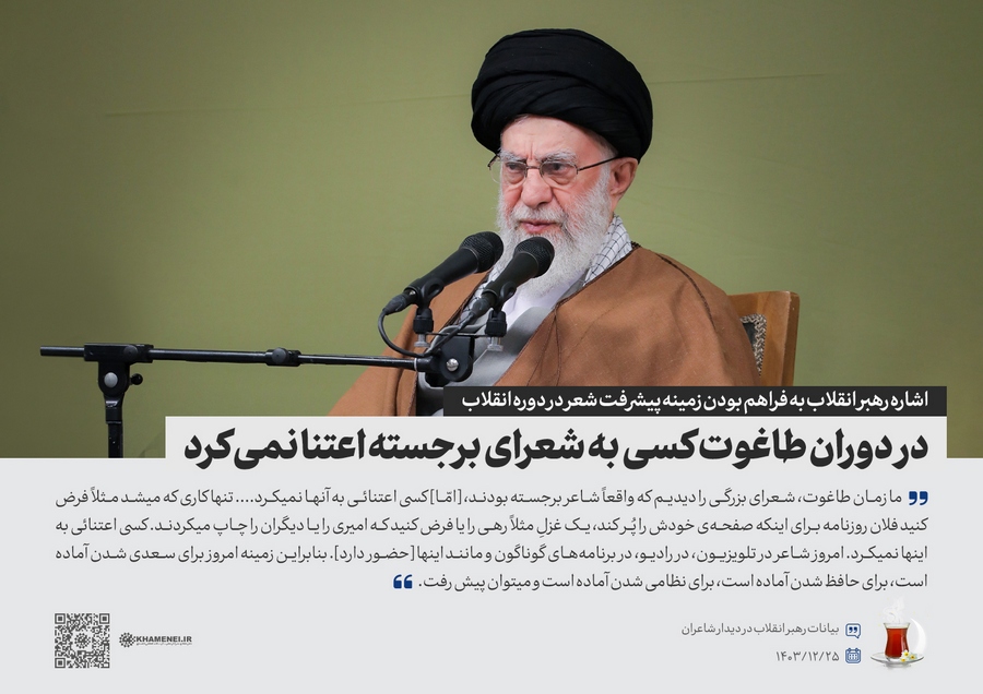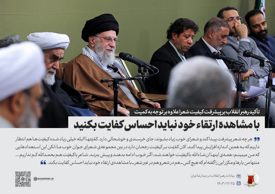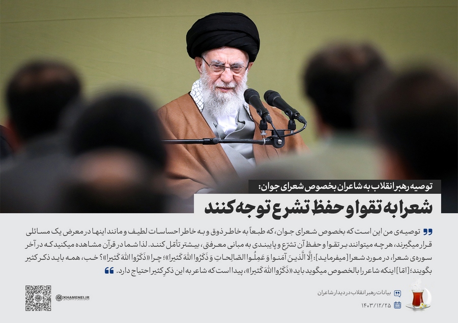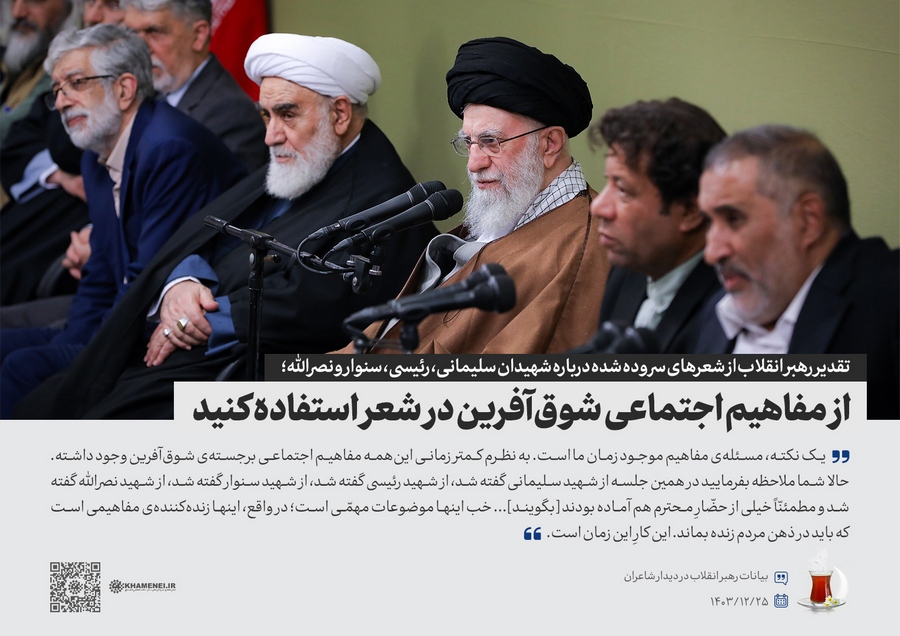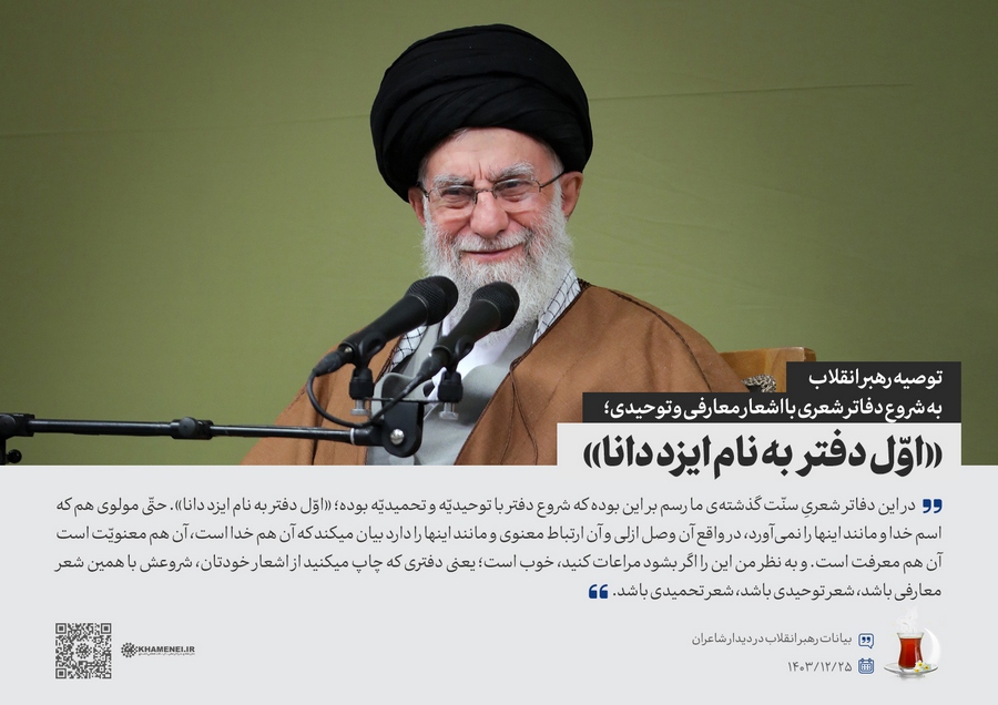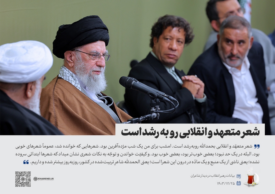 سخننگاشت | دیدار شاعران و اهالی فرهنگ و ادب فارسی در شب ولادت کریم اهلبیت حضرت امام حسن مجتبی (علیهالسلام)، جمعی از اهالی شعر و فرهنگ و اساتید ادبیات فارسی میهمان رهبر انقلاب بودند.رسانه KHAMENEI.IR در این مجموعه سخننگاشت مروری بر بیانات رهبر انقلاب داشته است.