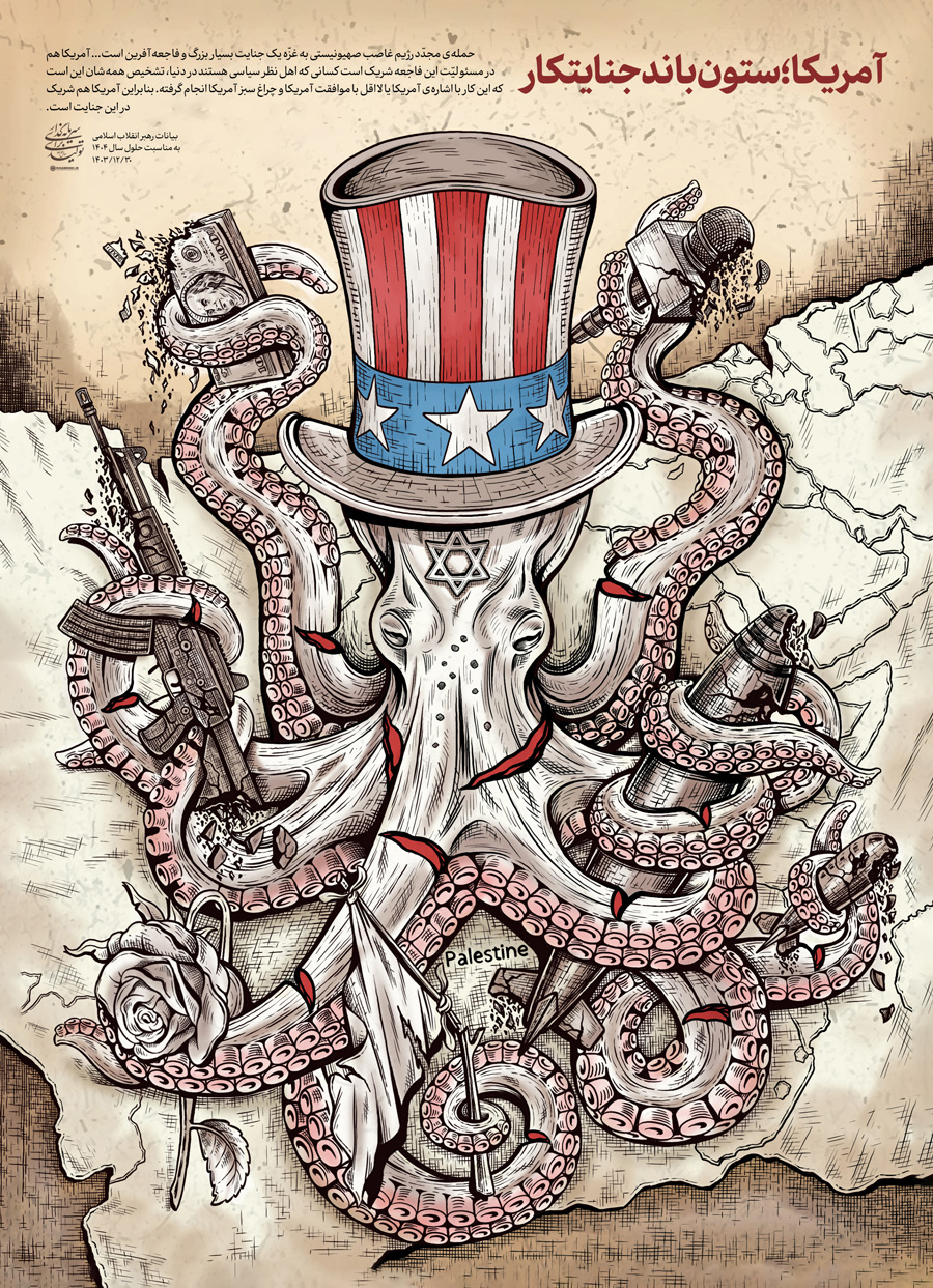 آمریکا؛ ستون باند جنایتکار حضرت آیتالله خامنهای: «حملهی مجدّد رژیم غاصب صهیونیستی به غزّه یک جنایت بسیار بزرگ و فاجعهآفرین است... آمریکا هم در مسئولیّت این فاجعه شریک است. کسانی که اهل نظر سیاسی هستند در دنیا، تشخیص همهشان این است که این کار با اشارهی آمریکا یا لااقل با موافقت آمریکا و چراغ سبز آمریکا انجام گرفته. بنابراین آمریکا هم شریک در این جنایت است.» ۱۴۰۳/۱۲/۳۰رسانه KHAMENEI.IR براساس این بخش از پیام نوروزی رهبر انقلاب به مناسبت آغاز سال ۱۴۰۴، لوح «آمریکا؛ ستون باند جنایتکار» را منتشر میکند.