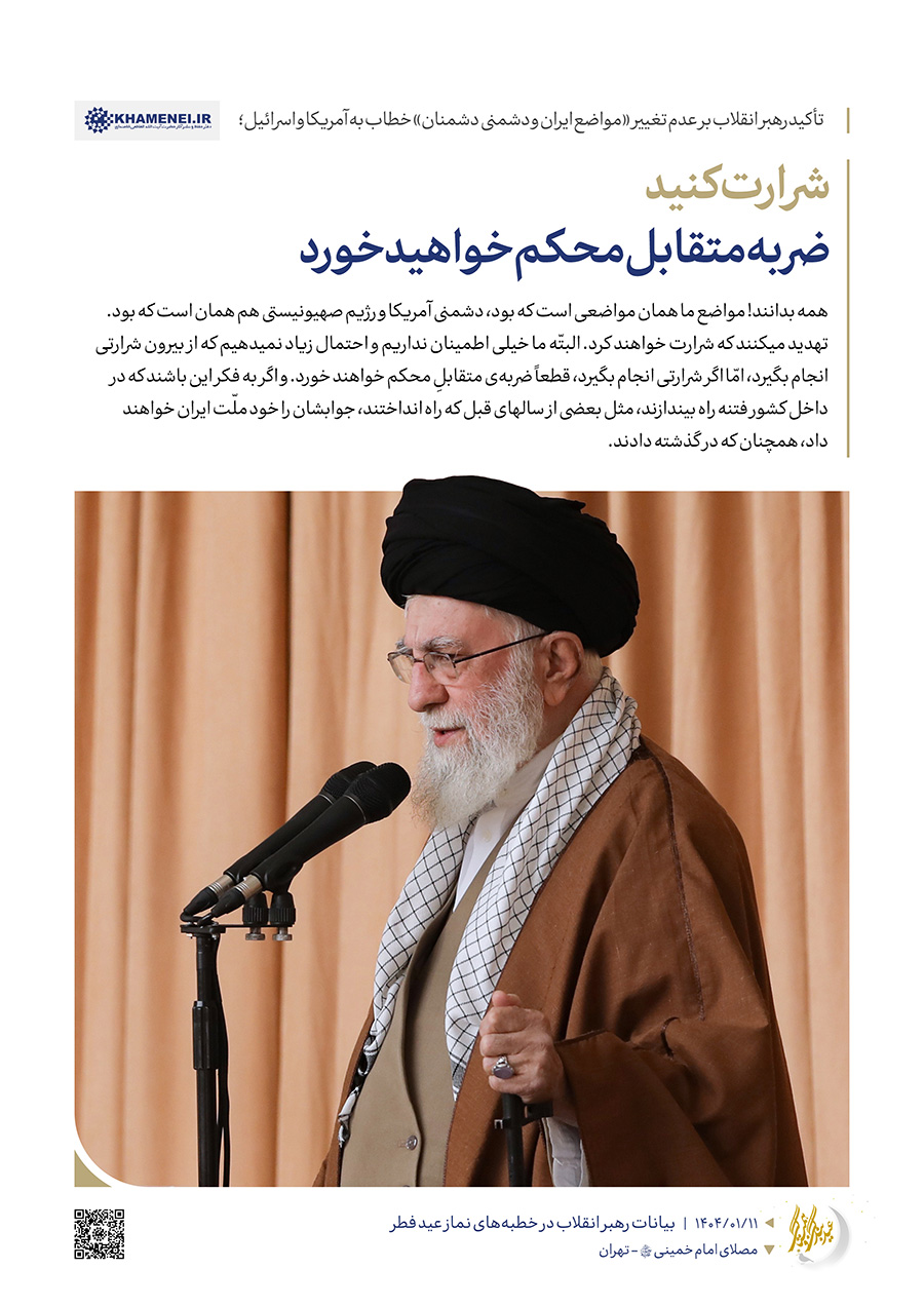 سخننگاشت | خطبههای نماز عید فطر![]() همزمان با اقامهی نماز باشکوه عید سعید فطر در سراسر کشور، هزاران نفر از مردم مؤمن تهران، صبح امروز نماز عید فطر را به امامت رهبر انقلاب اسلامی در مصلای امام خمینی (ره) اقامه کردند.رسانه KHAMENEI.IR در این مجموعه سخننگاشت مروری بر بیانات رهبر انقلاب داشته است.