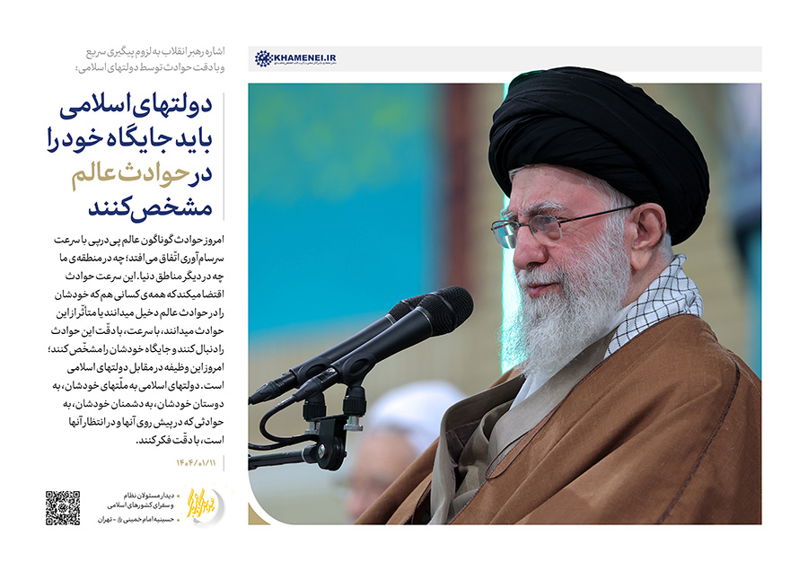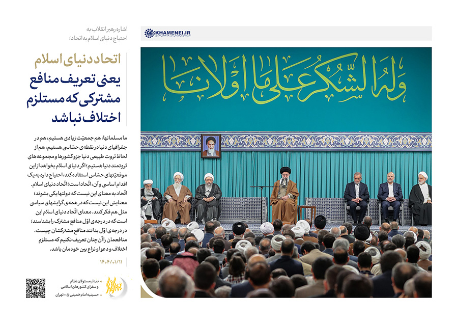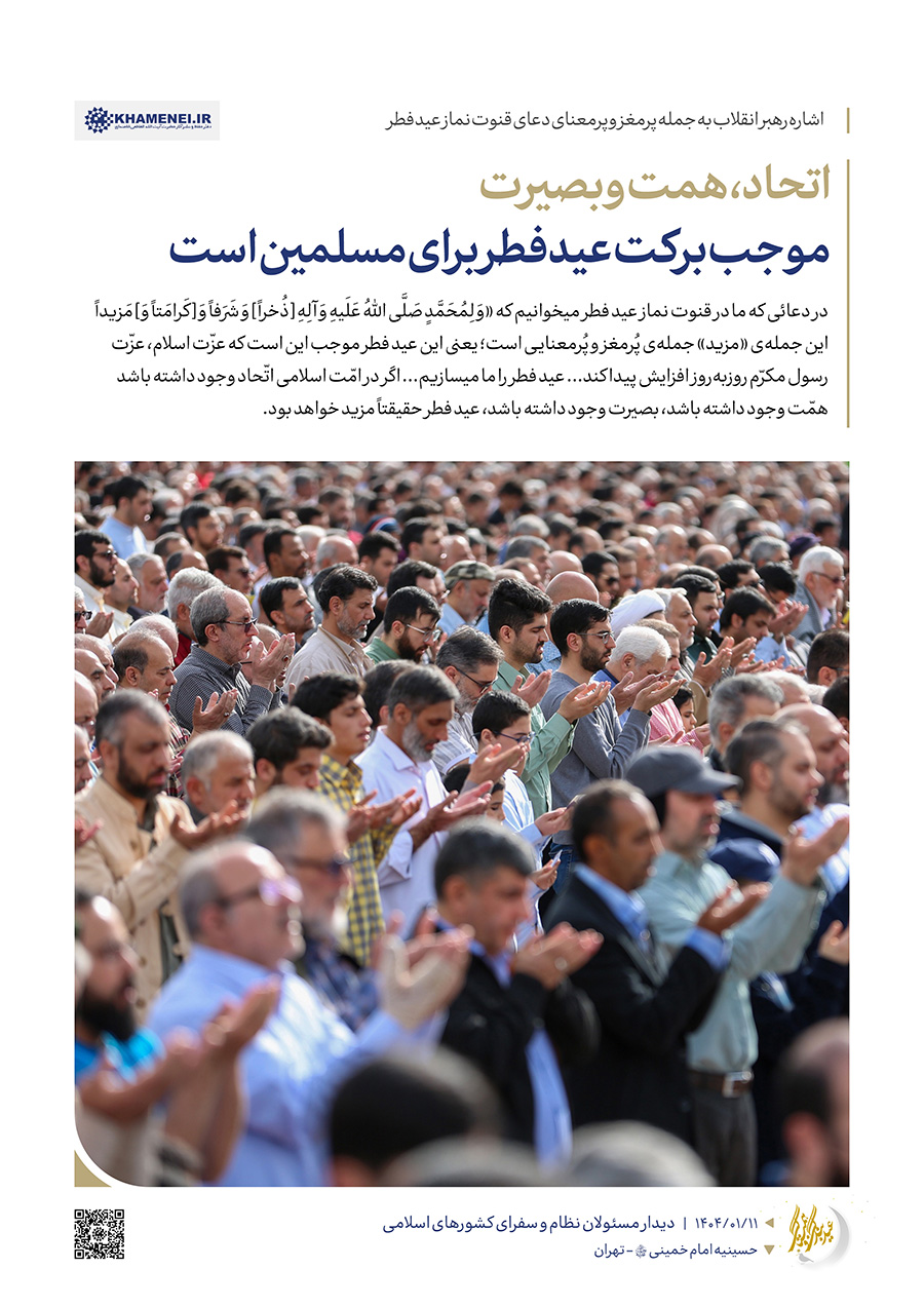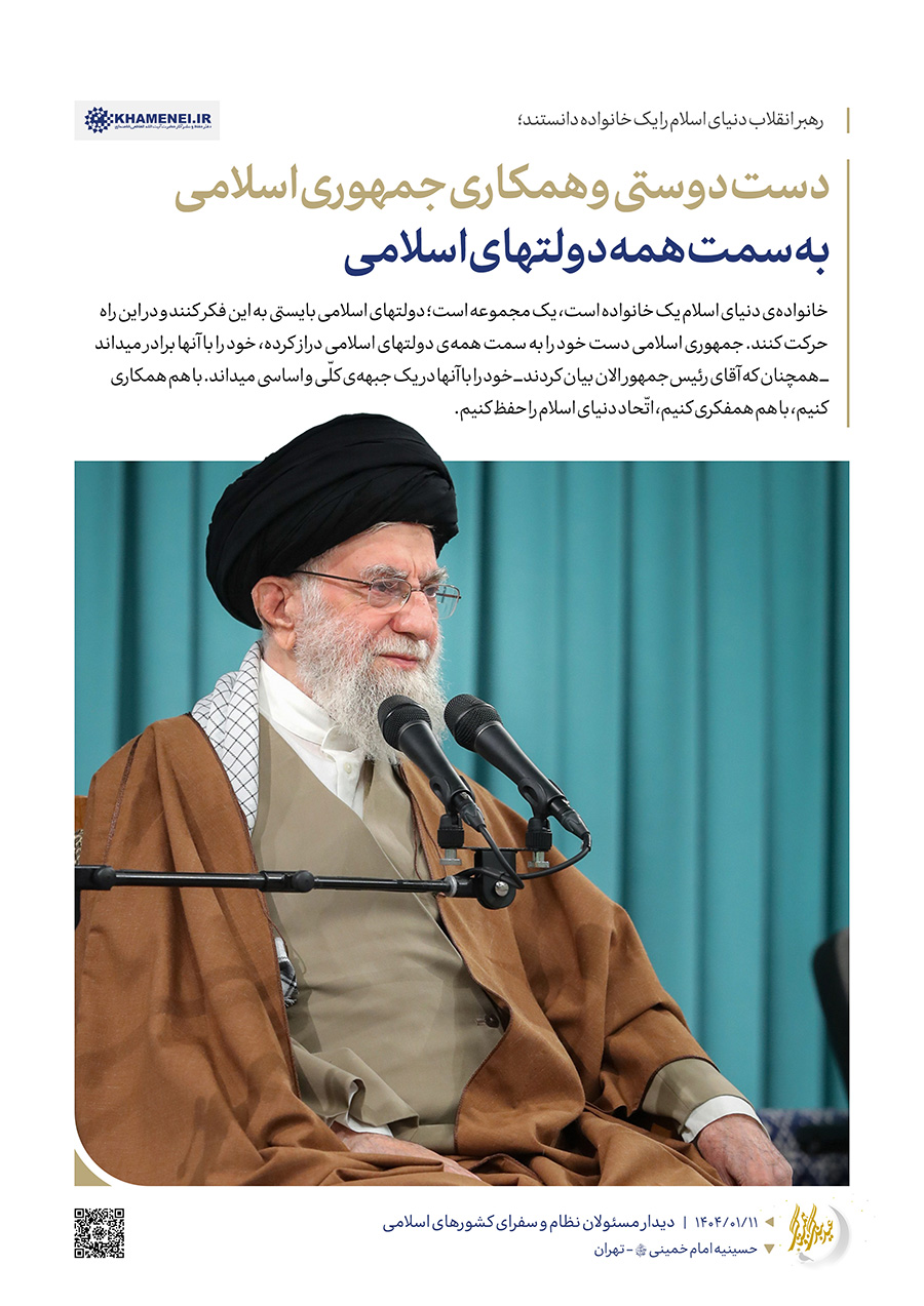 سخننگاشت | بیانات در دیدار مسئولان نظام و سفرای کشورهای اسلامی![]() بهمناسبت عید سعید فطر، جمعی از مسئولان نظام و سفرای کشورهای اسلامی، پیش از ظهر امروز (دوشنبه) در حسینیهی امام خمینی(ره) با رهبر انقلاب اسلامی دیدار کردند. رسانه KHAMENEI.IR در این مجموعه سخننگاشت مروری بر بیانات رهبر انقلاب داشته است.