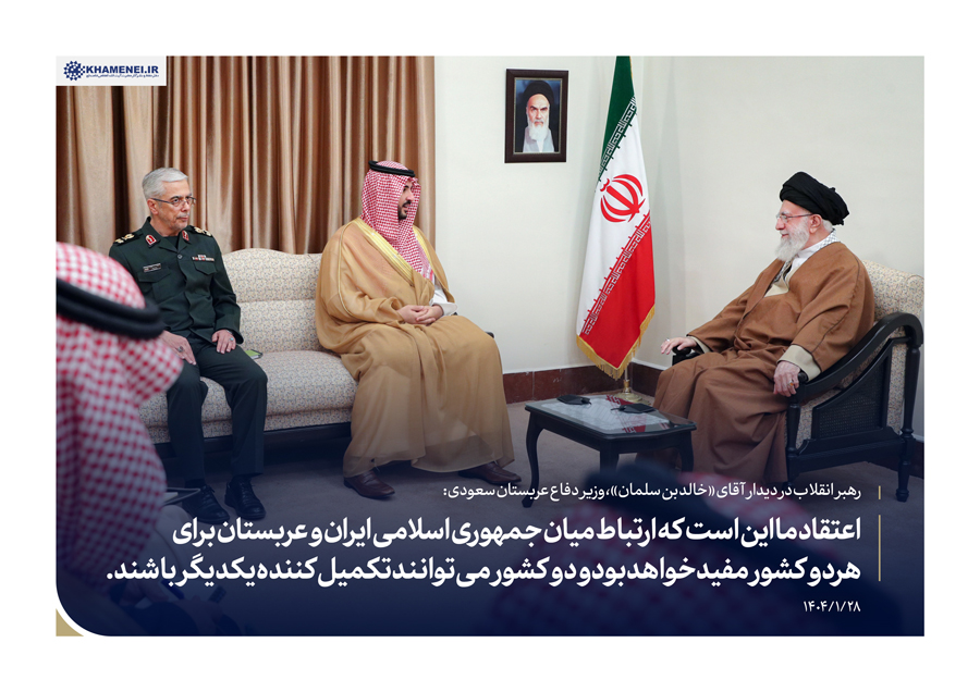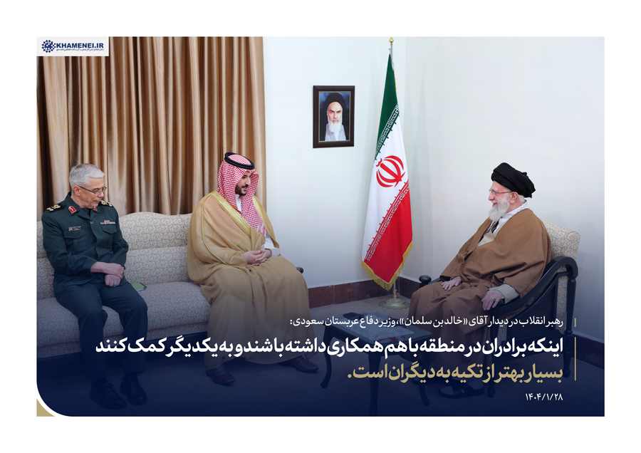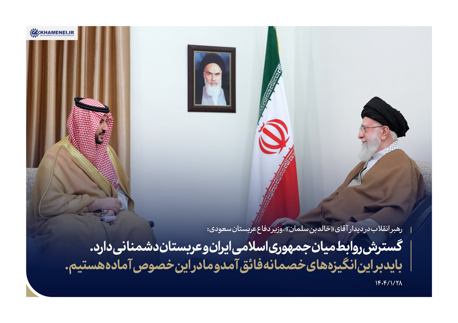 سخننگاشت | تقدیم پیام پادشاه عربستان به رهبر انقلاب آقای «خالد بن سلمان» وزیر دفاع عربستان سعودی بهعنوان فرستاده ویژه، عصر امروز پیام پادشاه این کشور را تقدیم حضرت آیتالله خامنهای رهبر معظم انقلاب اسلامی کرد.رسانه KHAMENEI.IR در این مجموعه سخننگاشت مروری بر بیانات رهبر انقلاب داشته است.