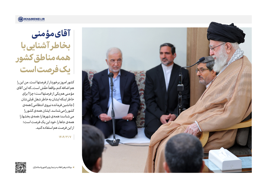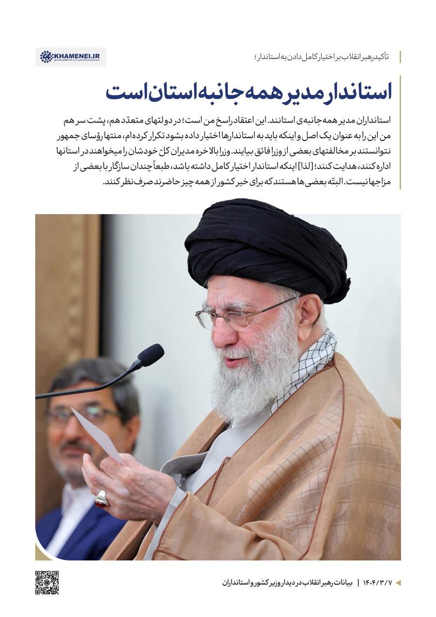 وزیر کشور و استانداران ظهر امروز چهارشنبه با حضرت آیتالله خامنهای رهبر انقلاب اسلامی دیدار کردند.