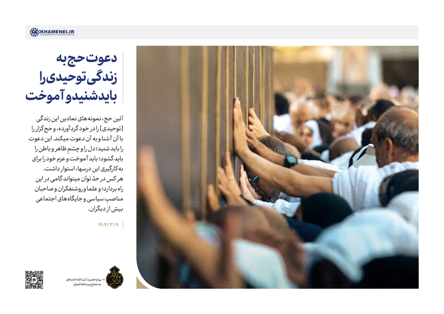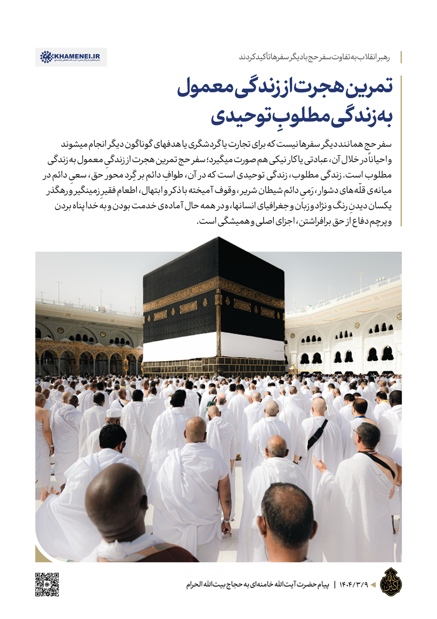سخننگاشت | پیام به حجاج بیتالله الحرام به مناسبت فرارسیدن موسم حج ابراهیمی، حضرت آیتالله خامنهای پیامی خطاب به حجاج بیتالله الحرام صادر نمودند.رسانه KHAMENEI.IR پیام رهبر انقلاب را در این مجموعه سخننگاشت مرور میکند.