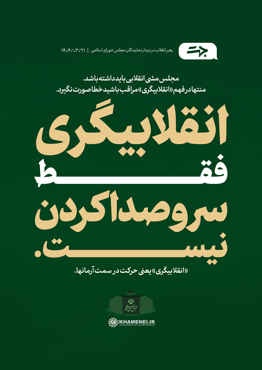 جهت | انقلابیگری فقط سروصدا کردن نیست حضرت آیتالله خامنهای: «مجلس مشی انقلابی باید داشته باشد... منتها در فهم «انقلابیگری» مراقب باشید خطا صورت نگیرد. انقلابیگری فقط سروصدا کردن نیست؛ «انقلابیگری» یعنی حرکت در سمت آرمانها؛» ۱۴۰۴/۰۳/۲۱رسانه KHAMENEI.IR در «جهت» مروری بر بیانات رهبر انقلاب اسلامی داشته است.