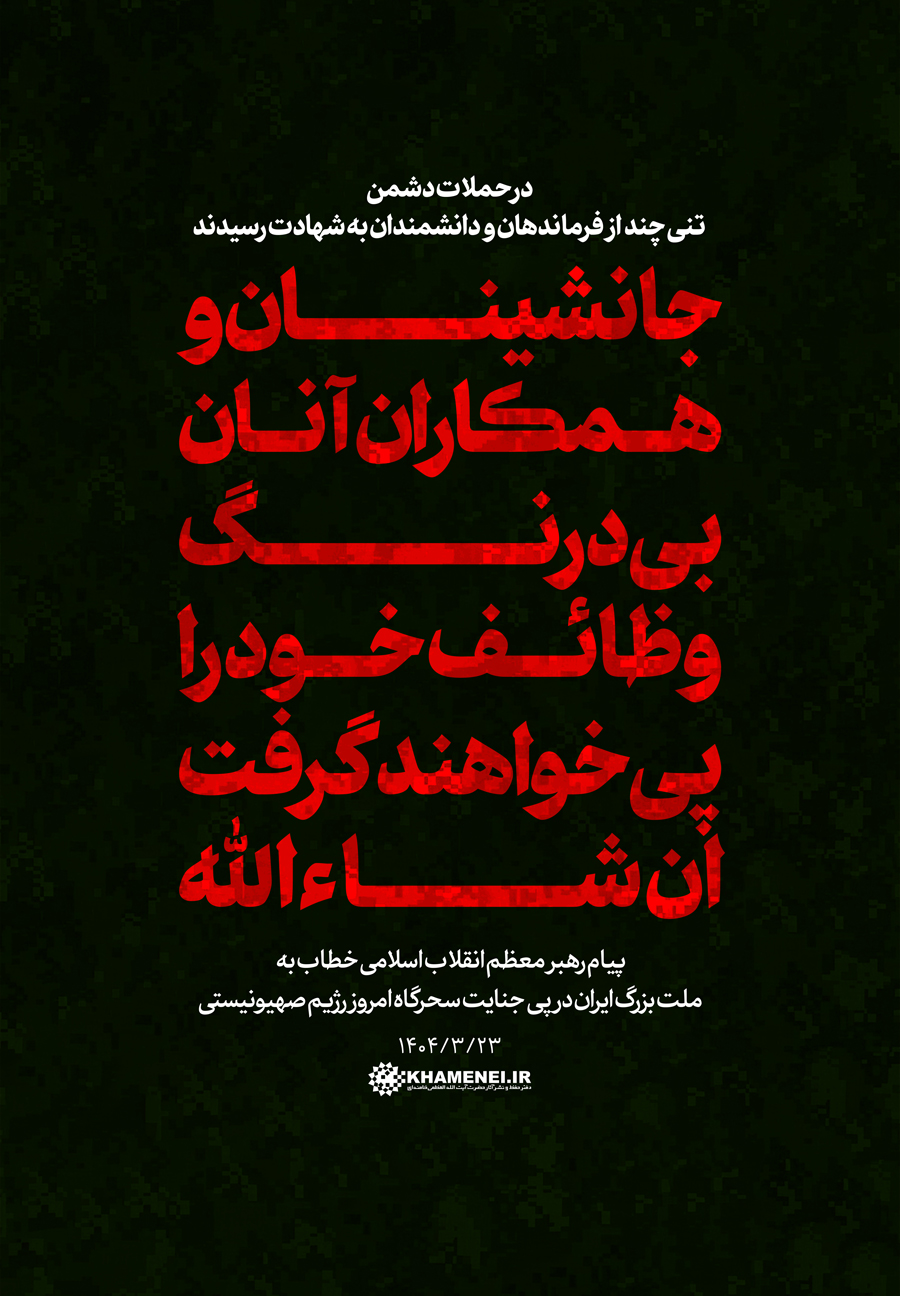سخننگاشت | رژیم صهیونی باید منتظر مجازاتی سخت باشد در پی جنایت سحرگاه امروز رژیم صهیونیستی علیه کشور عزیزمان، حضرت آیتالله خامنهای رهبر معظم انقلاب اسلامی خطاب به ملت بزرگ ایران پیامی صادر کردند.رسانه KHAMENEI.IR بخشهایی از پیام رهبر انقلاب را در این مجموعه سخننگاشت مرور میکند.