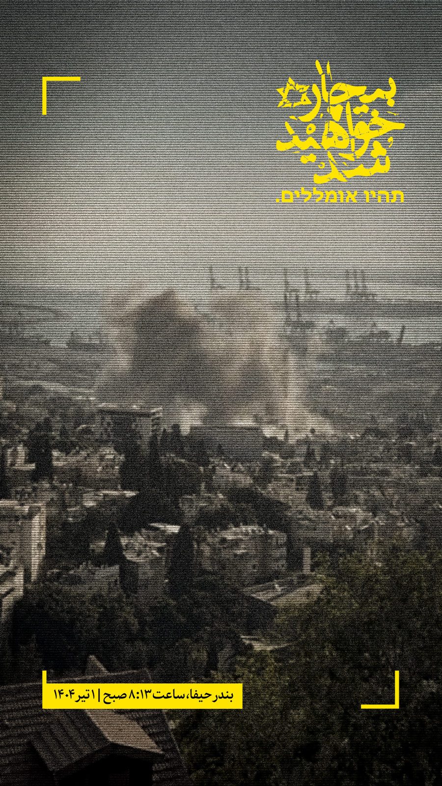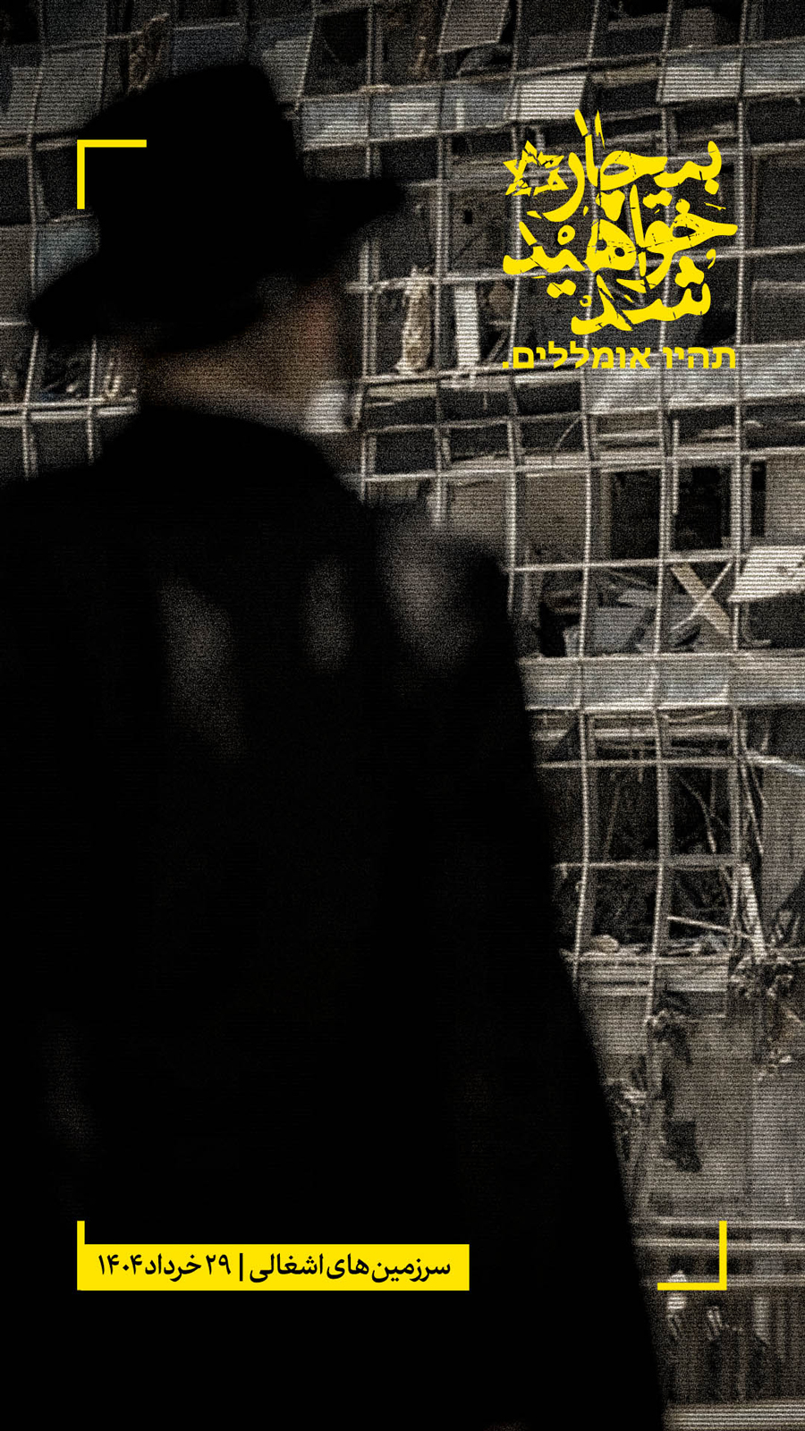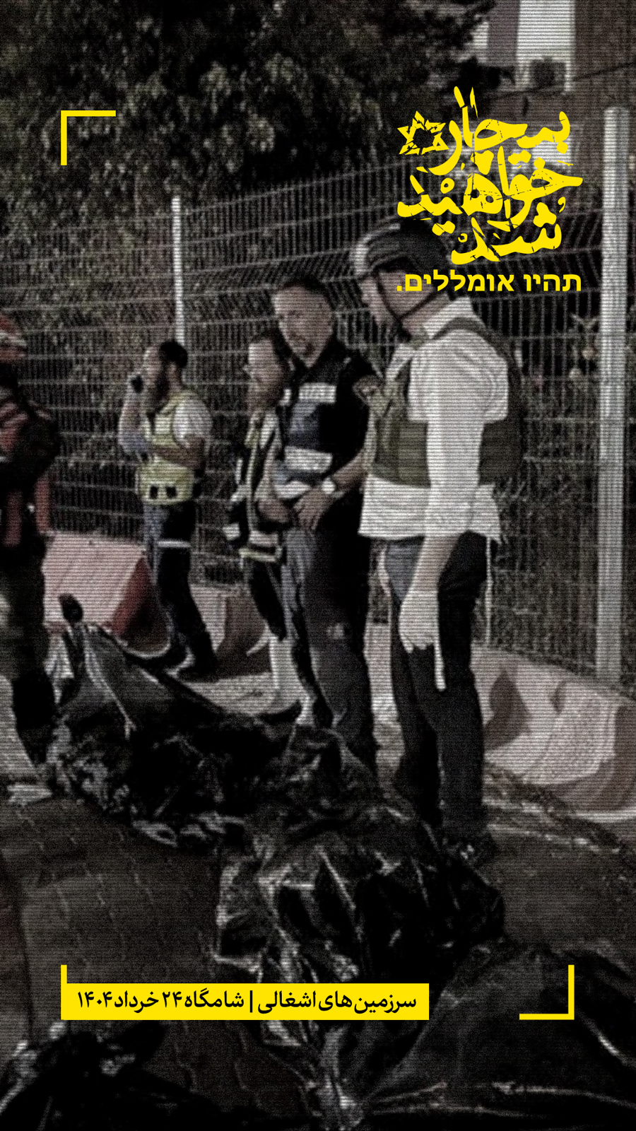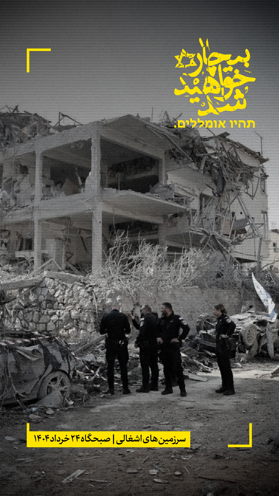 بیچاره خواهید شد | תהיו אומללים حضرت آیتالله خامنهای: «رژیم صهیونیستی اشتباه بزرگی کرد، خطای بزرگی کرد، غلطی کرد و عواقب آن، او را بیچاره خواهد کرد، به توفیق الهی. ملّت ایران از خون شهدای گرانقدر نخواهد گذشت، از تجاوز به آسمان کشورش صرفنظر نخواهد کرد. نیروهای مسلّح ما آماده هستند و مسئولین کشور و همهی آحاد مردم پشت سر نیروهای مسلّحند.» ۱۴۰۴/۰۳/۲۳رسانه KHAMENEI.IR براساس این بخش از پیام تلویزیونی رهبر انقلاب خطاب به ملت ایران، مجموعه لوح «بیچاره خواهید شد | תהיו אומללים» را منتشر میکند. [دریافت نشان] [دریافت تصاویر حساب کاربری]