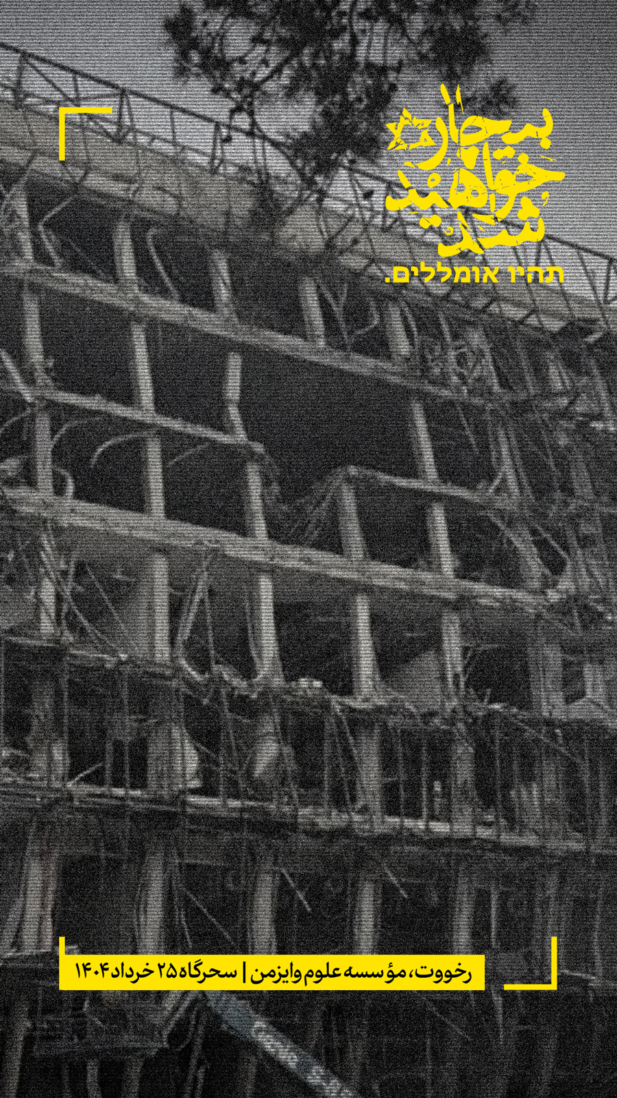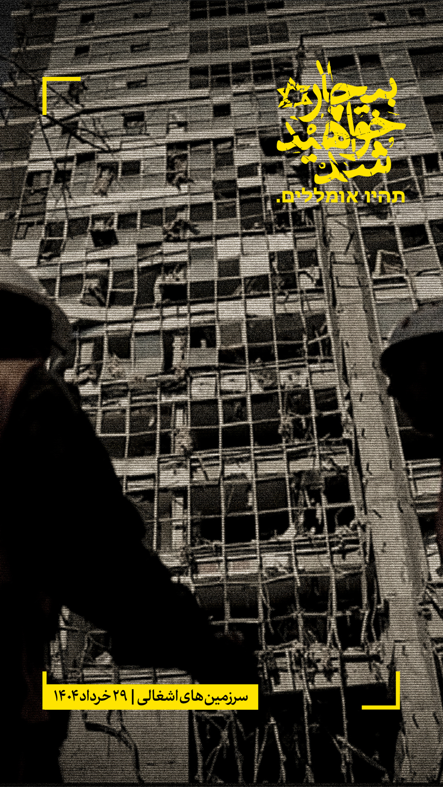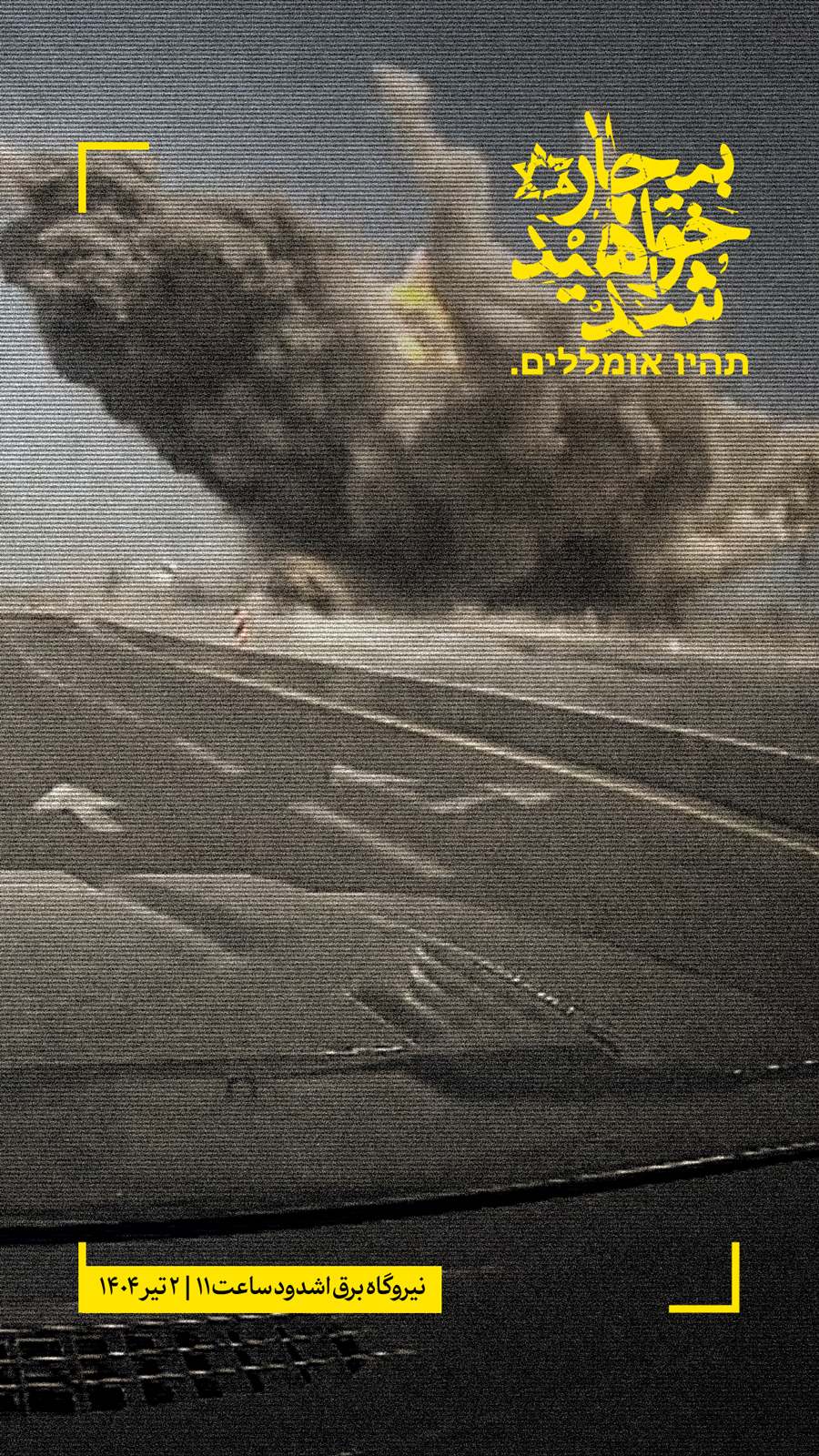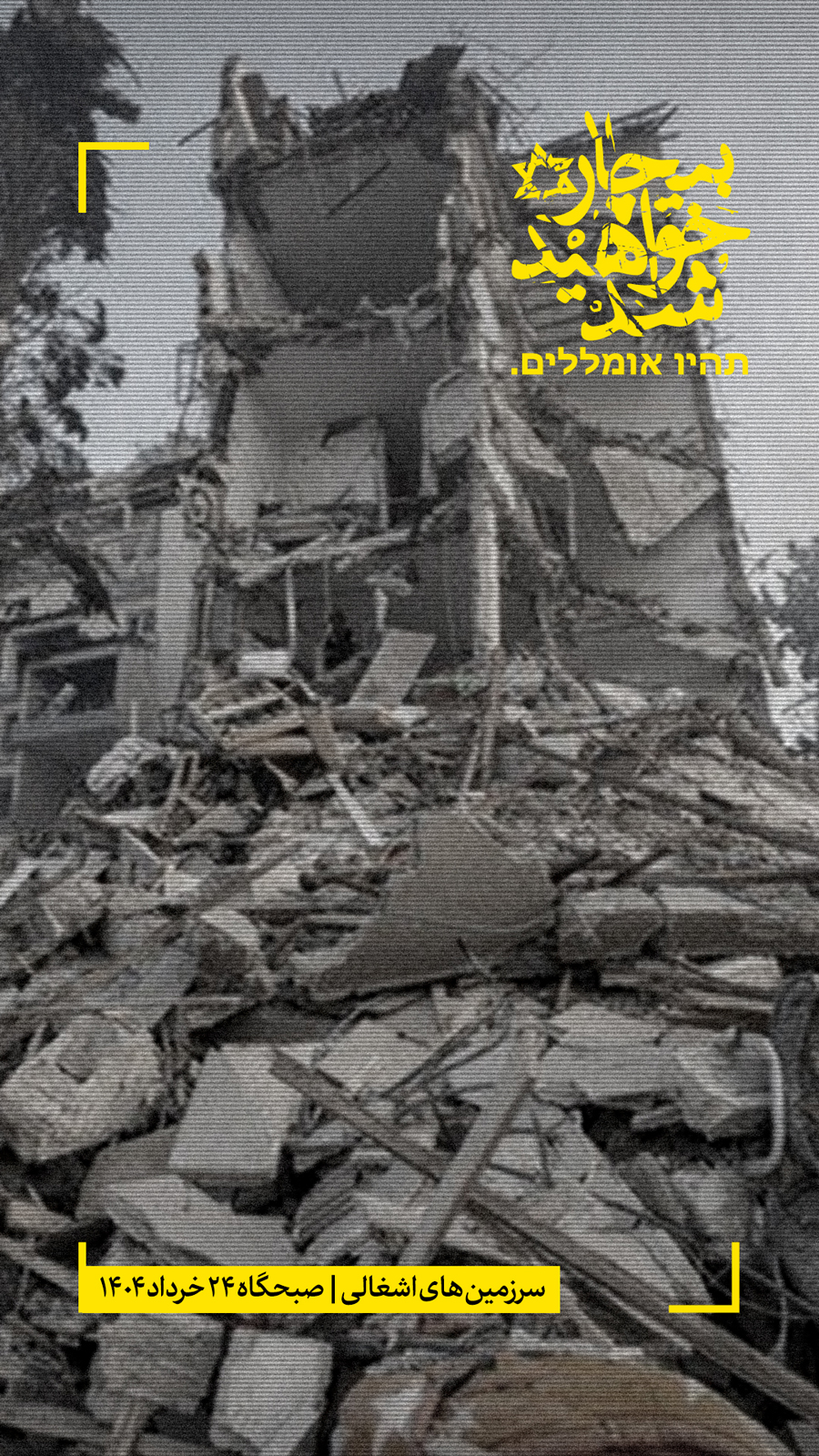 بیچاره خواهید شد | תהיו אומללים حضرت آیتالله خامنهای: «رژیم صهیونیستی اشتباه بزرگی کرد، خطای بزرگی کرد، غلطی کرد و عواقب آن، او را بیچاره خواهد کرد، به توفیق الهی. ملّت ایران از خون شهدای گرانقدر نخواهد گذشت، از تجاوز به آسمان کشورش صرفنظر نخواهد کرد. نیروهای مسلّح ما آماده هستند و مسئولین کشور و همهی آحاد مردم پشت سر نیروهای مسلّحند.» ۱۴۰۴/۰۳/۲۳رسانه KHAMENEI.IR براساس این بخش از پیام تلویزیونی رهبر انقلاب خطاب به ملت ایران، مجموعه لوح «بیچاره خواهید شد | תהיו אומללים» را منتشر میکند. [دریافت نشان] [دریافت تصاویر حساب کاربری]