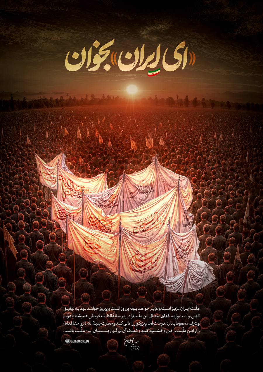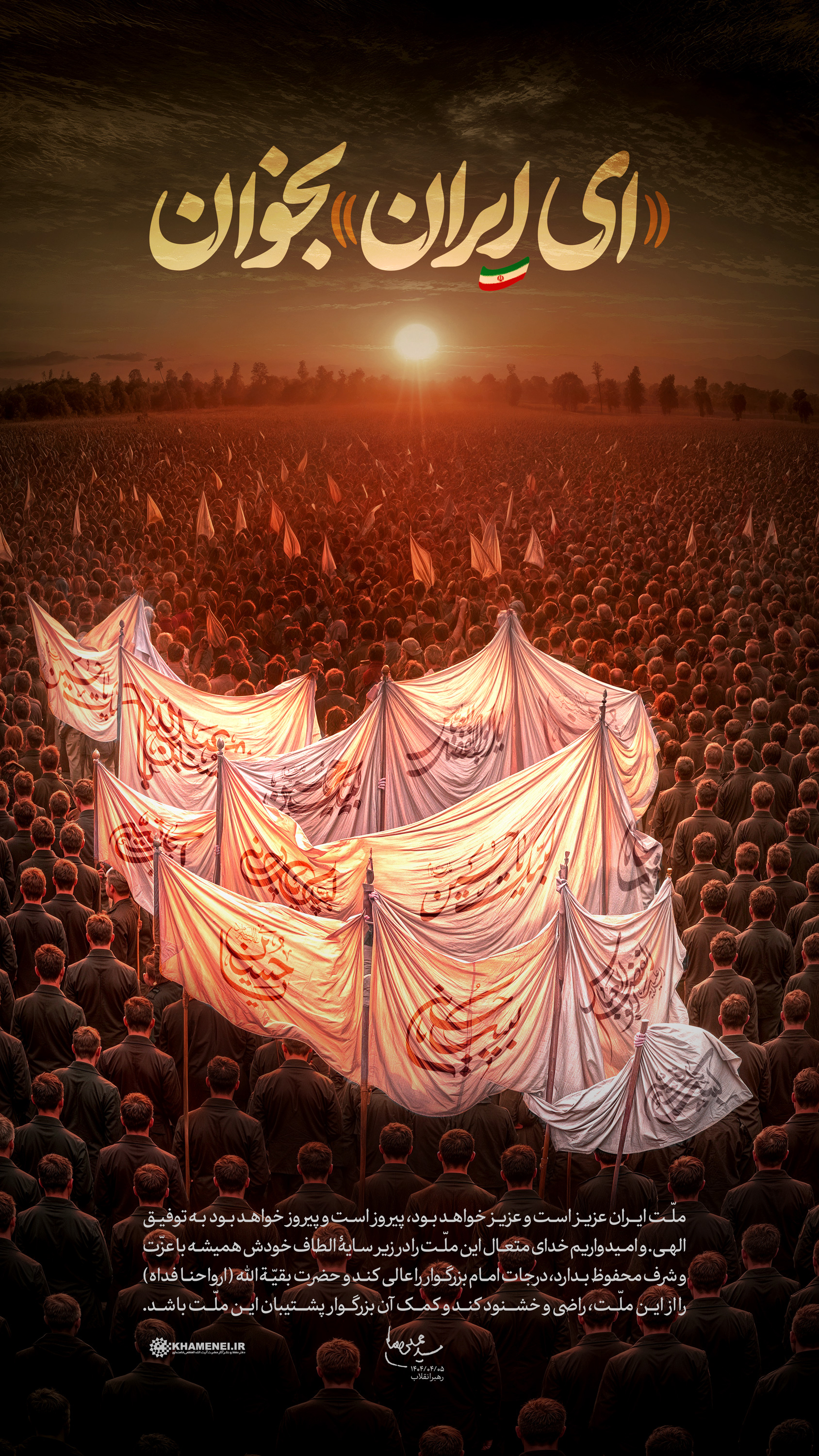 «ای ایران» بخوان حضرت آیتالله خامنهای: «ملّت ایران عزیز است و عزیز خواهد بود، پیروز است و پیروز خواهد بود به توفیق الهی. و امیدواریم خدای متعال این ملّت را در زیر سایهی الطاف خودش همیشه با عزّت و شرف محفوظ بدارد، درجات امام بزرگوار را عالی کند و حضرت بقیّةالله (ارواحنا فداه) را از این ملّت، راضی و خشنود کند و کمک آن بزرگوار، پشتیبان این ملّت باشد.» ۱۴۰۴/۰۴/۰۵رسانه KHAMENEI.IR براساس این بخش از بیانات رهبر انقلاب، مجموعه لوح ««ای ایران» بخوان» را منتشر میکند. [دریافت نشان: سفید | سبز ] [نسخه شبکه اجتماعی لوح]