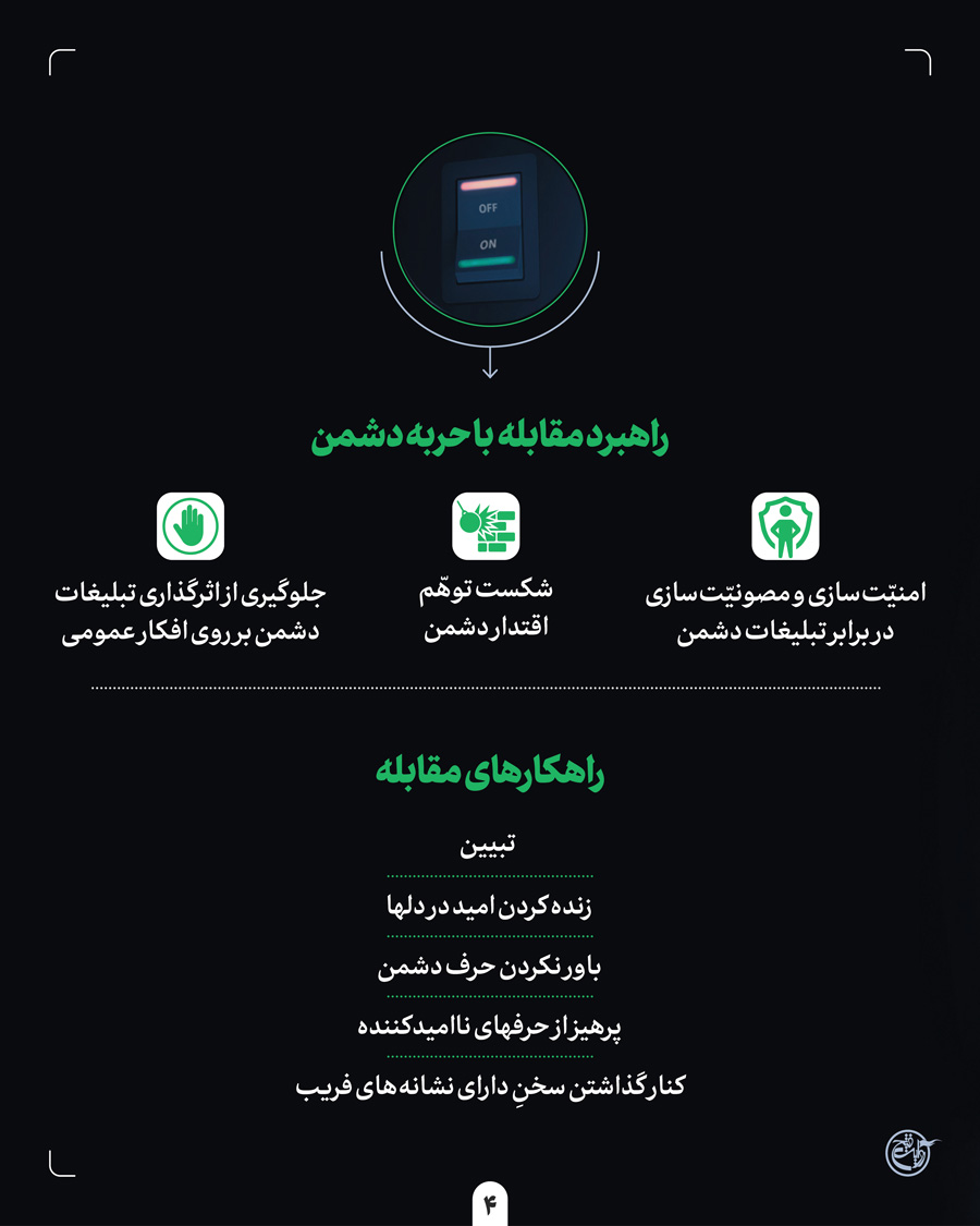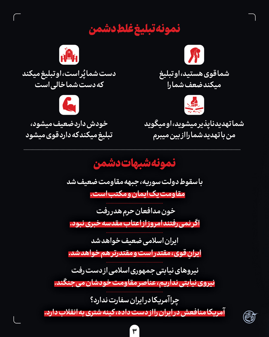 برچسبها: شبههافکنی؛ یأس؛ تبلیغات دشمن؛ تبیین؛ امیدآفرینی؛ دروغ؛ جریان رسانهای دشمن؛ تهاجم رژیم صهیونی به ایران؛
