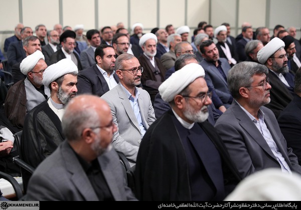 دیدار رئیس و مسئولان قوه قضائیه رئیس و مسئولان ارشد قوه قضائیه صبح امروز چهارشنبه ۲۵ تیرماه ۱۴۰۴ با حضور در حسینیه امام خمینی(ره) با حضرت آیتالله خامنهای رهبر انقلاب اسلامی دیدار کردند.