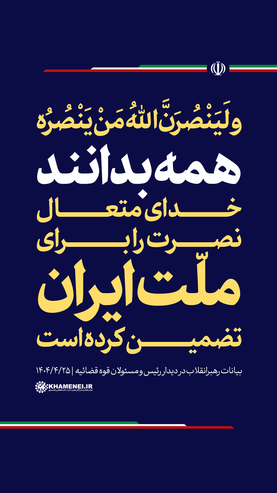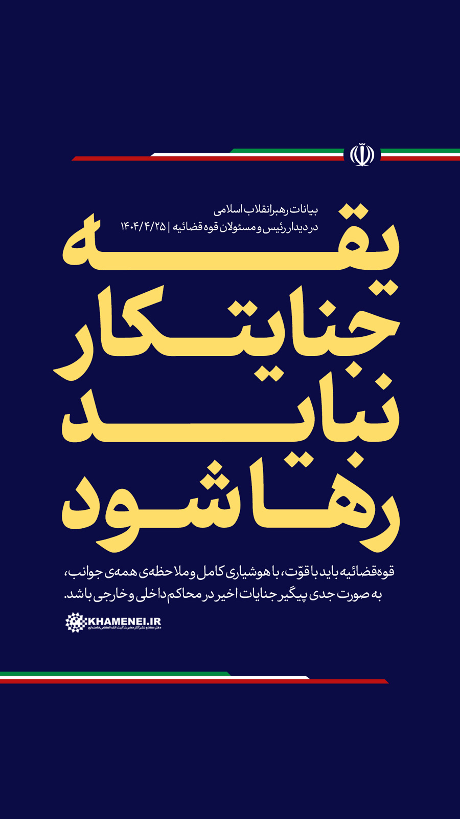 سخننگاشت | دیدار رئیس و مسئولان قوه قضائیه![]() رئیس و مسئولان ارشد قوه قضائیه صبح امروز چهارشنبه ۲۵ تیرماه ۱۴۰۴ با حضور در حسینیه امام خمینی(ره) با حضرت آیتالله خامنهای رهبر انقلاب اسلامی دیدار کردند. رسانه KHAMENEI.IR در این مجموعه سخننگاشت مروری بر بیانات رهبر انقلاب داشته است.