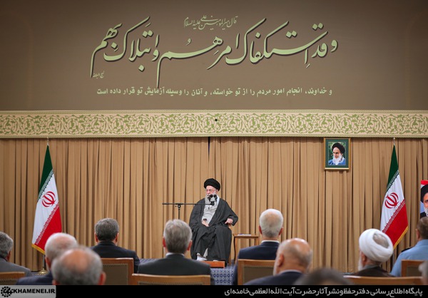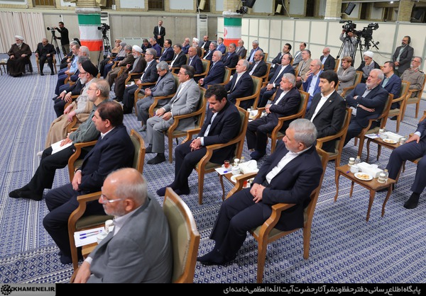 رهبر معظم انقلاب اسلامی عصر امروز در دیدار رئیس جمهور و هیأت وزیران، با اشاره به ضرورت تقویت مؤلفههای قدرت و عزت ملی، «مسئله معیشت مردم» را از مهمترین مسائل کشور خواندند و با تأکید بر اقدامات جدیتر دولت در «انضباط بازار» و رفع دغدغه مردم درباره افزایش بیضابطه قیمت کالاها، توصیههای مهمی در زمینه ضرورت «غلبه فضای کار و تلاش و امید» بر «حالت نه جنگ نه صلح»، تقویت تولید، پیگیری تصمیمات تا حصول نتایج، استفاده از فرصت موجود اجماعسازی برای انجام کارهای مهم، حل مشکل مسکن، پرهیز از اسراف بهویژه در دستگاههای دولتی و توجه مسئولان و اصحاب قلم و بیان به تبیین نقاط قوت حقیقی و امیدآفرین بیان کردند.