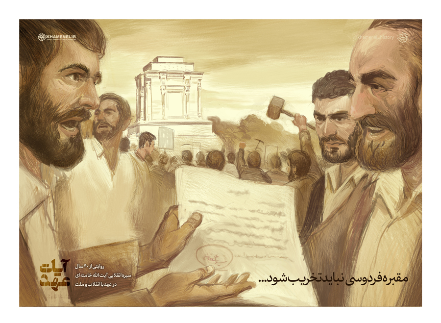 مقبره فردوسی نباید تخریب شود... حضرت آیتالله خامنهای: «خوشبختانه ادبیات سلف ما همهاش در جهت ارزشهای الهی و اسلامی است؛ از جمله همین شاهنامه که شما به آن اشاره کردید. اول انقلاب عدهیی از مردمِ بااخلاصِ بیاطلاع رفته بودند قبر فردوسی را در توس خراب کنند! وقتی من مطلع شدم، چیزی نوشتم و فوراً به مشهد فرستادم؛ که آن را بردند و بالای قبر فردوسی نصب کردند؛ نمیدانم الان هم هست یا نه. بچههای حادی که به آنجا میرفتند، چشمشان که به شهادت بنده میافتد، لطف میکردند و میپذیرفتند و دیگر کاری به کار فردوسی نداشتند! حقیقت قضیه این است که فردوسی یک حکیم است؛ تعارف که نکردیم به فردوسی، حکیم گفتیم. الان چند صد سال است که دارند به فردوسی، حکیم میگویند. حکمت فردوسی چیست؟ حکمت الهیِ اسلامی.» ۱۳۷۰/۱۲/۰۵آیات عهد، یک روایت تصویری ویژه از چهل سال فعالیتها و نقاط مهم عملکرد انقلابی حضرت آیتالله خامنهای است که مخاطبان را با گوشههای بینظیری از کنشهای اثرگذار ایشان از آغاز پیروزی انقلاب و دوران رهبری نظام اسلامی آشنا میکند. این مجموعه با نخستین اقدامات آیتالله خامنهای در روزهای آغازین پیروزی انقلاب آغاز شده و سپس روایتی از کنشهای ناگفته و اثرگذار ایشان در دوران عضویت در شورای انقلاب، نمایندگی مجلس، امامت جمعه تهران، ریاست جمهوری و رهبری انقلاب اسلامی به تصویر در آمده است.