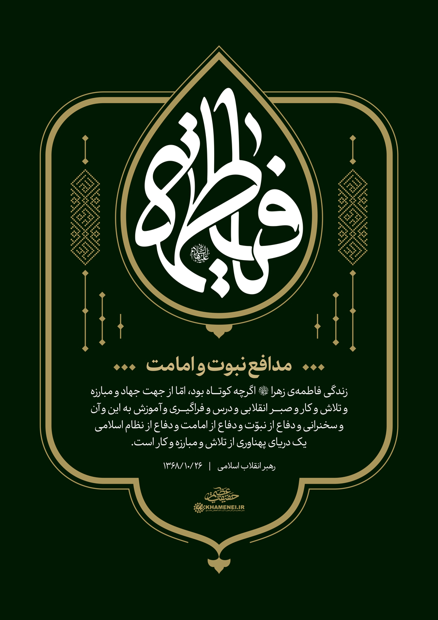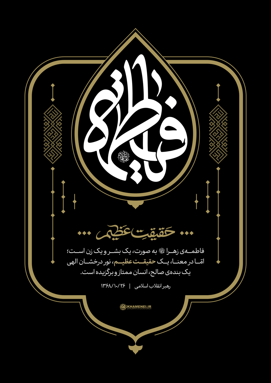سخننگاشت | حقیقت عظیم![]() حضرت آیتالله خامنهای: «فاطمهی زهرا به صورت، یک بشر و یک زن است؛ امّا در معنا، یک حقیقت عظیم، نور درخشان الهی، یک بندهی صالح، انسان ممتاز و برگزیده است.» ۱۳۶۸/۱۰/۲۶ رسانه KHAMENEI.IR به مناسبت ایام شهادت حضرت زهرا سلاماللهعلیها مجموعه سخننگاشت «حقیقت عظیم» را منتشر میکند. [دریافت نسحه PDF]