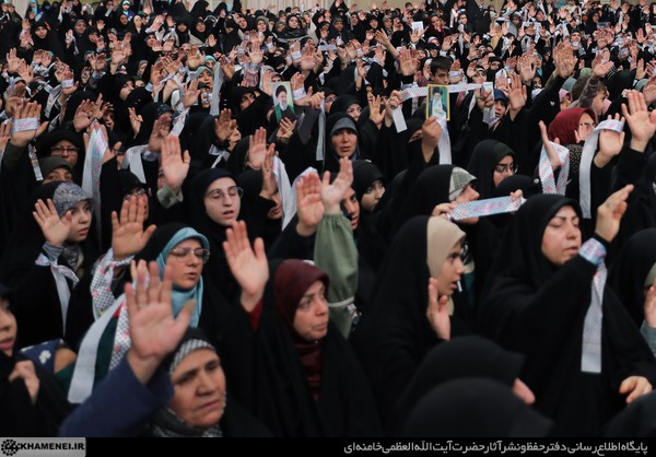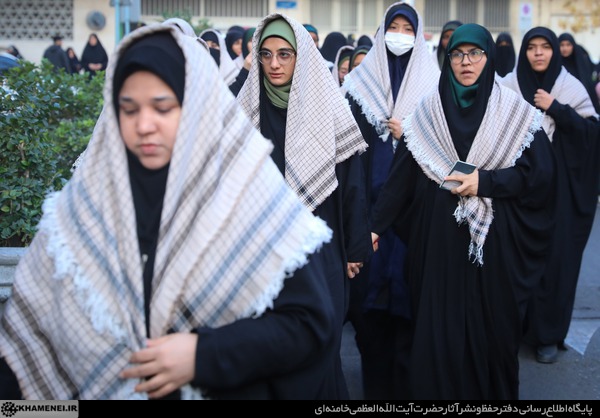 هزاران نفر از زنان و دختران مناطق مختلف کشور، صبح امروز، چهارشنبه ۱۲ آذرماه با حضور در حسینیه امام خمینی(ره) با حضرت آیتالله خامنهای رهبر انقلاب اسلامی دیدار کردند.